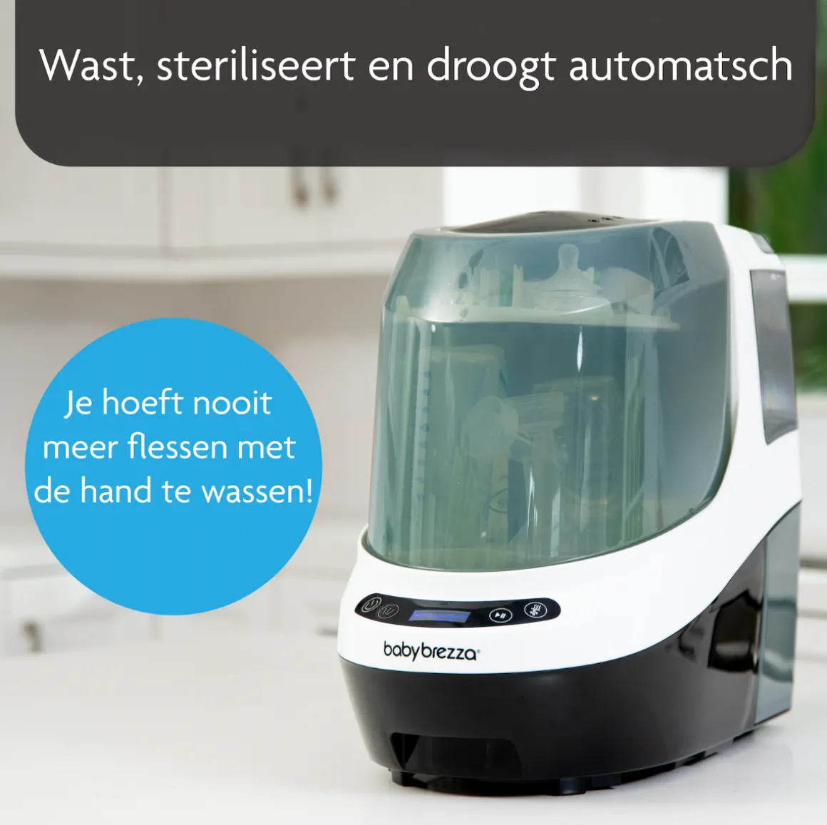 De Baby Brezza Bottle Washer Pro biedt ouders een revolutionaire manier om babyflessen, kolfonderdelen en drinkbekers schoon en steriel te houden. Deze machine neemt al het zware werk uit handen door automatisch te wassen, te steriliseren en te drogen, zodat je nooit meer een flessenborstel nodig hebt. Met 20 hogedrukstralen wordt alles krachtig en grondig gereinigd. De stoomsterilisatie doodt 99,9% van de bacteriƫn en daarna zorgt de HEPA-gefilterde hete lucht voor een perfecte droging.