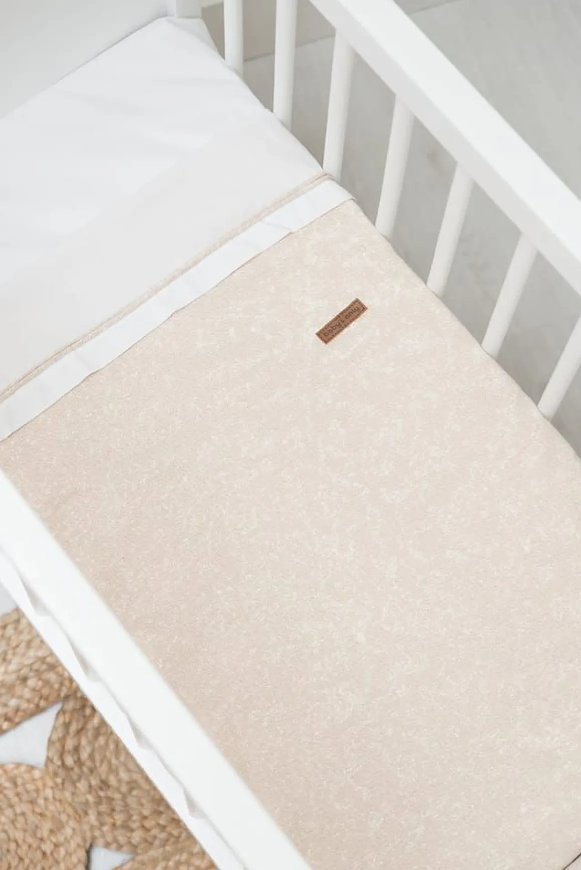 Met het Baby’s Only Ledikantlaken Sparkle Goud Ivoor Mêlee 120 x 150 cm maak je de aankleding van de babykamer helemaal af! Het Baby’s Only ledikantlaken heeft een leuk glitter biesje aan de bovenkant en is gemaakt van 100% katoen. Het ledikantlaken mag gewassen worden op een maximale temperatuur van 30 graden en drogen mag alleen op een lage temperatuur.