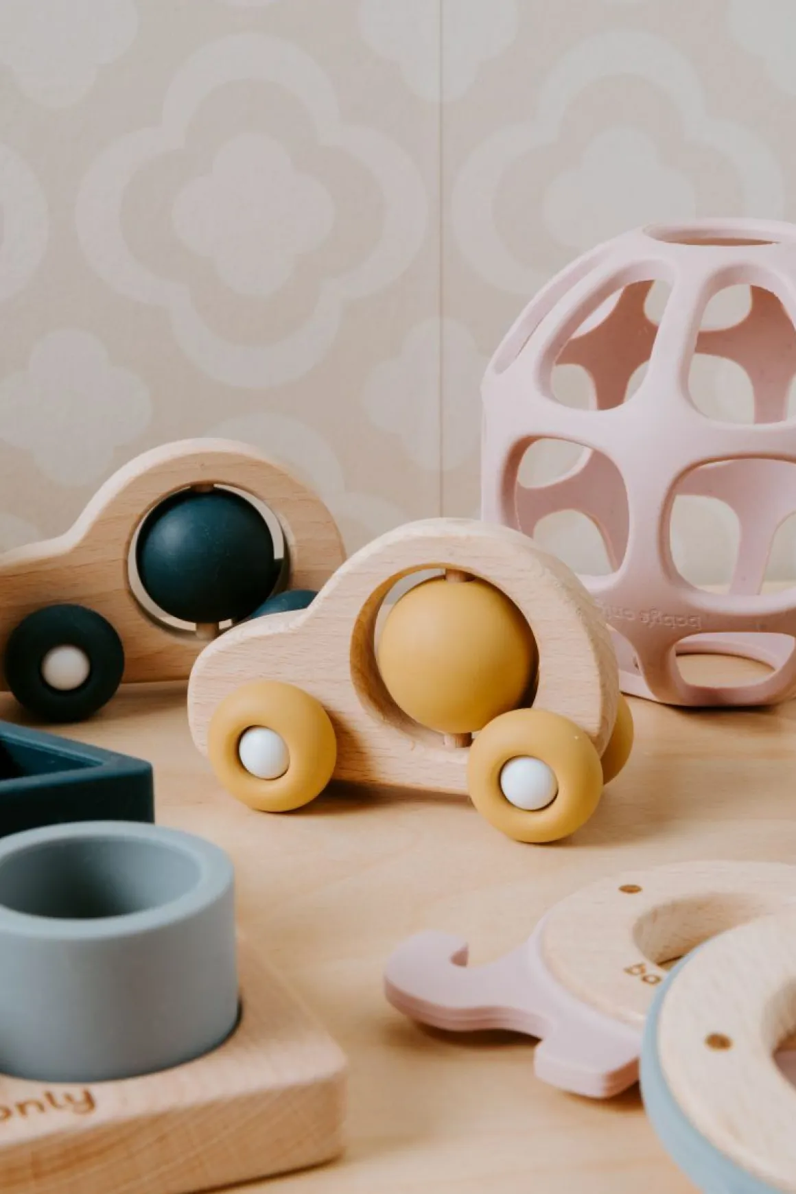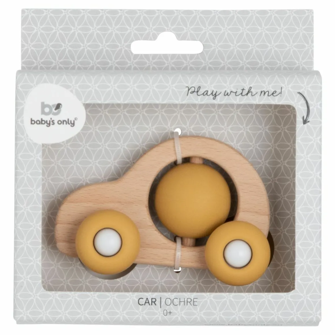 Het houten speelgoed autootje van Baby’s Only is verkrijgbaar in drie verschillende kleuren; Stonegreen, Okergeel en Vintage Blue.