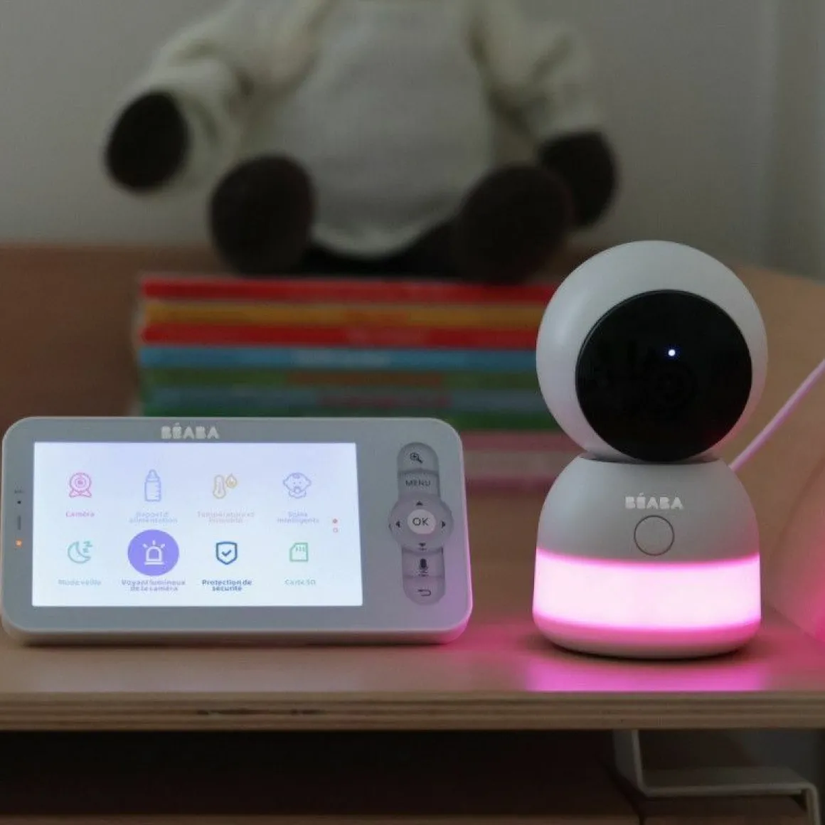 - Voorzien van verschillende functies: walkie-talkie, thermometer, vochtigheidssensor, alarm, maaltijdtimer, zoom x2 en x4, 3 slaapliedjes en white noise