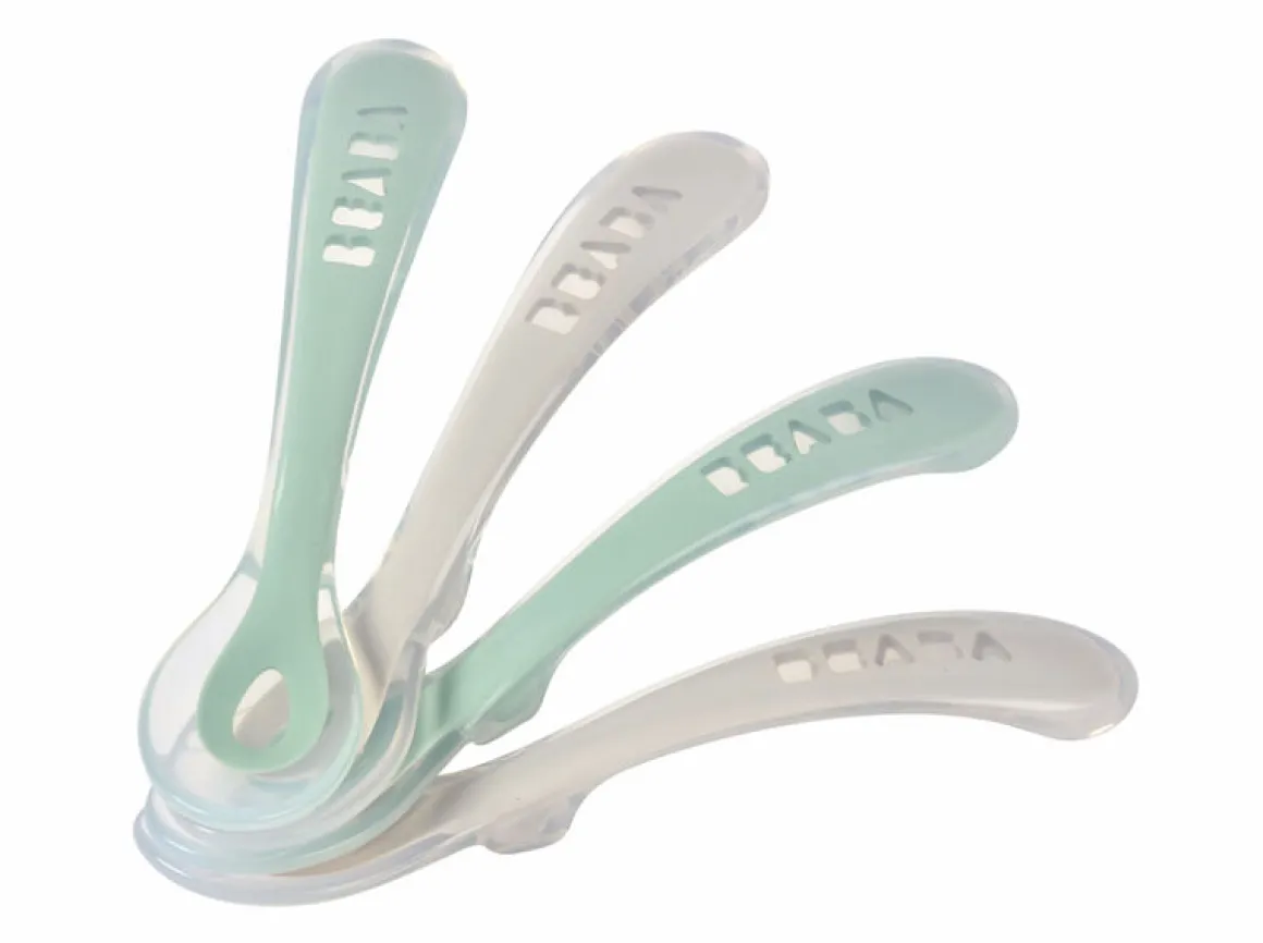 De Beaba Set van 4 siliconenlepels – 2de leeftijd met reisetui zijn ergonomisch gevormd om perfect in de hand van je kindje te passen. De greeplengte is geschikt voor alle soorten potjes, en het lange handvat is ontworpen voor de hand van een volwassene.