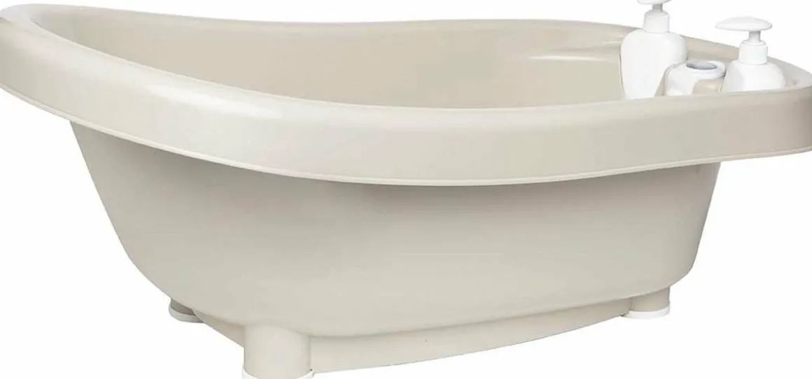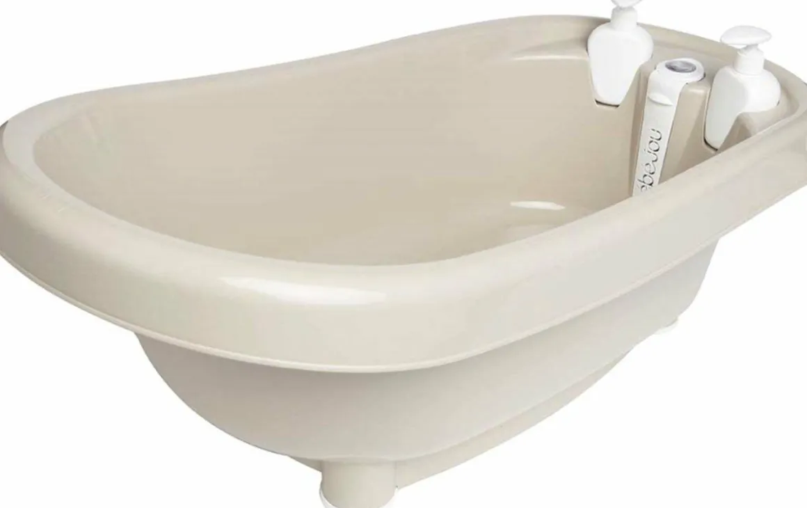 Het Bébé-Jou Thermobad Taupe is een babybadje met een geïntegreerde badthermometer. Hierdoor kan je in één oogopslag de exacte temperatuur van het badwater aflezen, zodat je zeker weet dat het water niet te warm is. Dankzij de twee zeepdispensers voor shampoo en zeep heb je alles wat je nodig hebt binnen handbereik. Het afvoersysteem heeft een badstopje dat geopend kan worden zonder dat je je hand in het water hoeft te steken.