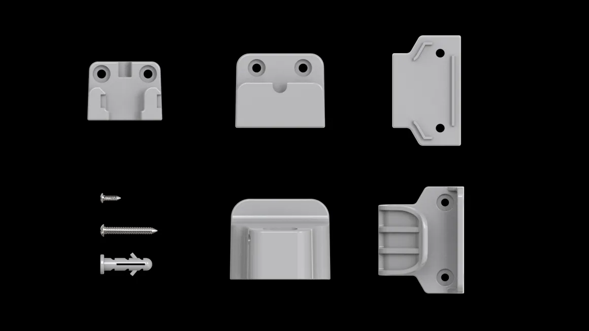 Bevestig de grijphaken aan de tegenovergestelde zijde van de cassette om het hekje te kunnen sluiten. De cassette van het traphekje en de grijphaken worden met schroeven op de muur bevestigd.