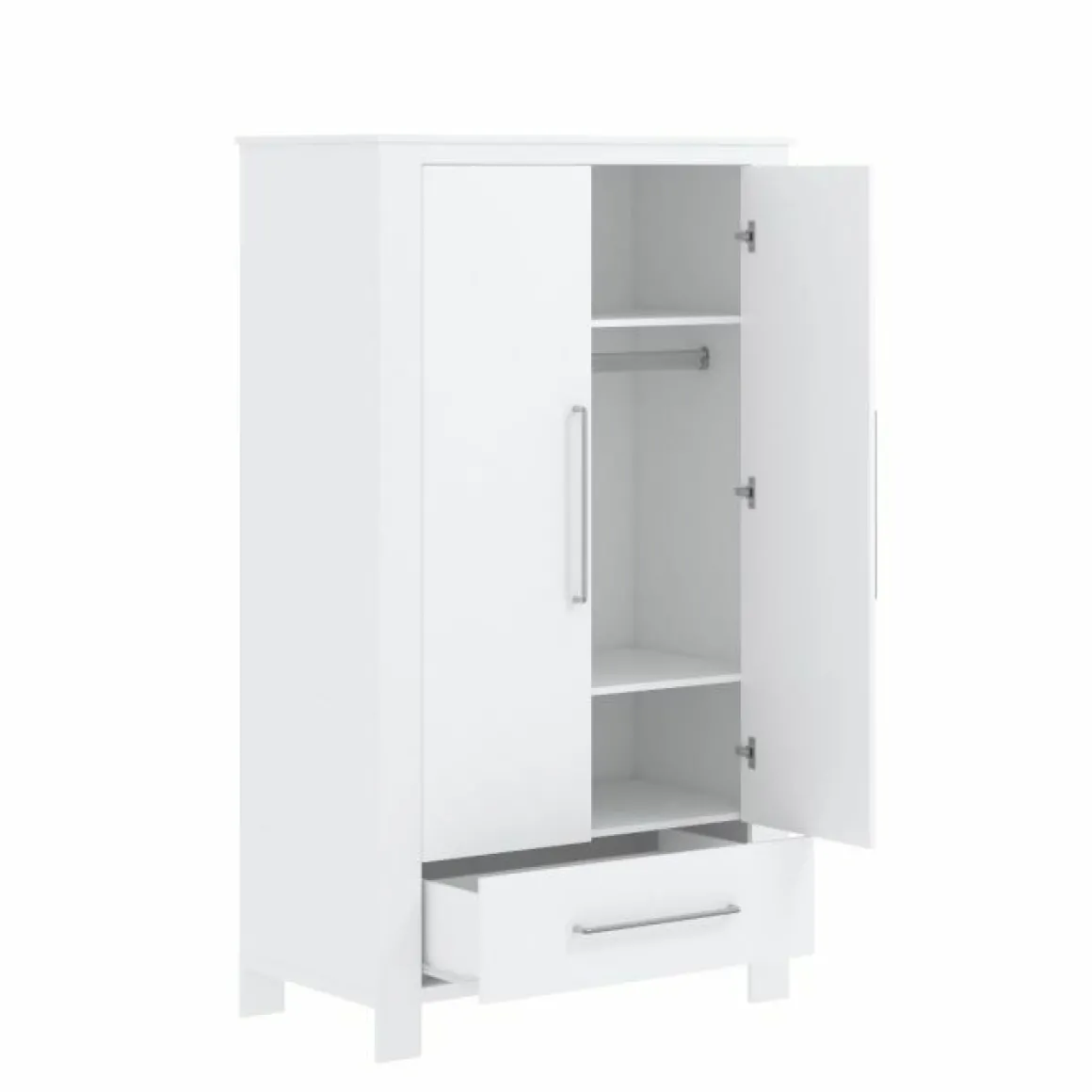 Born Lucky Babykamer Jim Wit 2 Delig is een stijlvol en modern babykamertje. De set bestaat uit een baby bedje en een commode en is perfect voor in een kleinere ruimte. De babykamer is ook ideaal voor als je al een kledingkast hebt voor je kleintje! De meubels zijn wit van kleur en vormen daardoor de perfecte basis voor het kamertje.Â