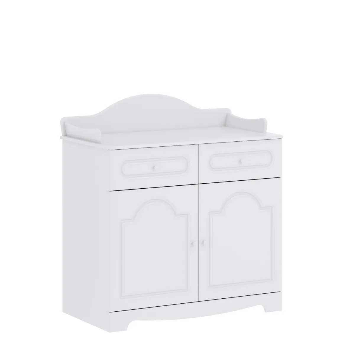 De 2-delige set bestaat uit een ledikant en een commode. Het ledikant biedt een veilige en comfortabele slaapplek en heeft een in hoogte verstelbare bodem, zodat het meegroeit met je baby. De commode is praktisch ingericht met twee ruime lades en extra opbergruimte achter de deuren, ideaal voor luiers, kleding en verzorgingsproducten. Dankzij de opstaande rand op het commodeblad kun je je kindje met een gerust hart verschonen.