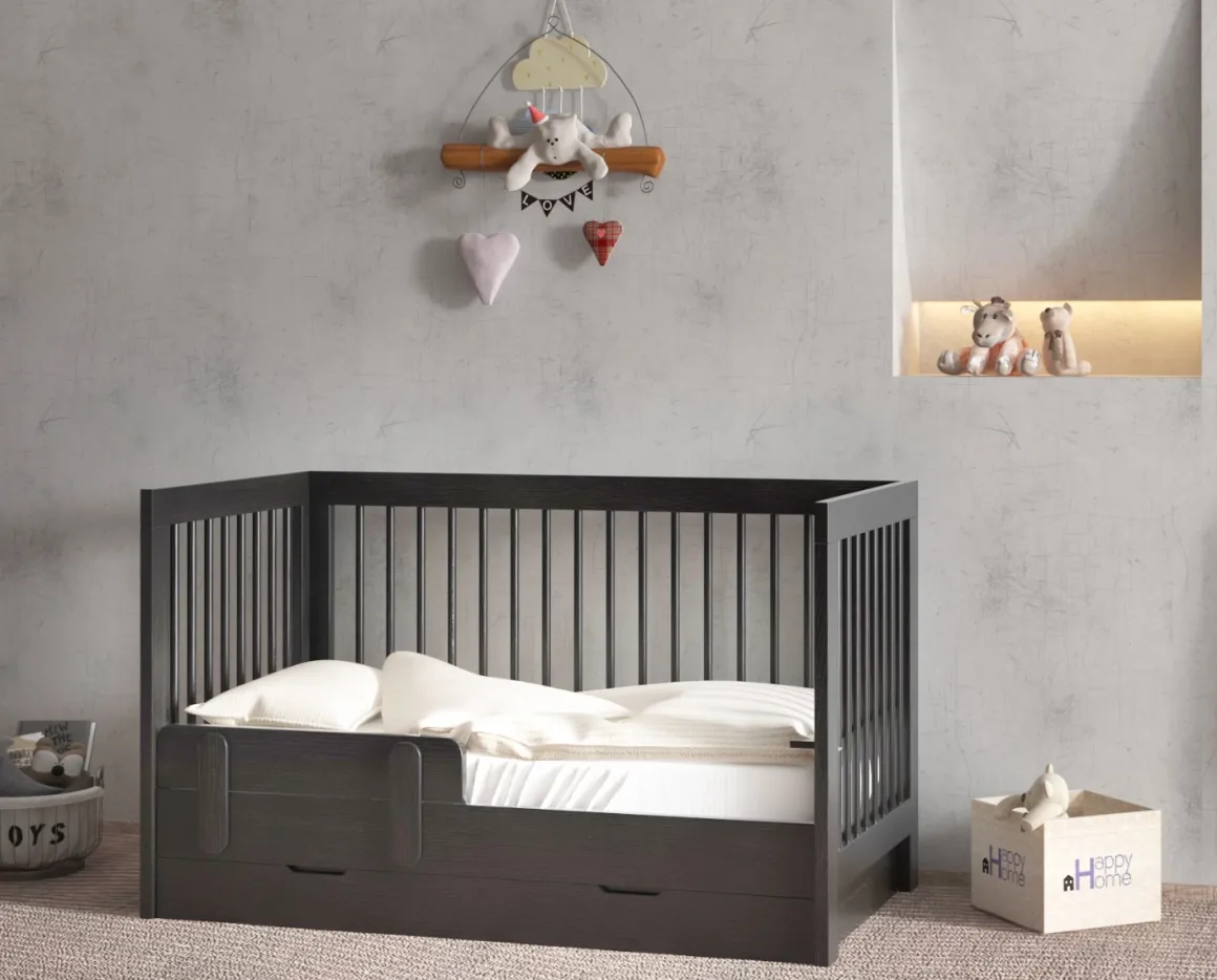 Het combi ledikant is zwart van kleur en daardoor heeft het een stoere en stijlvolle uitstraling. Het is een echte eyecatcher voor in de babykamer! Het zwarte babymeubel kan worden gecombineerd met accessoires in jouw favoriete kleur, voor een unieke babykamer.