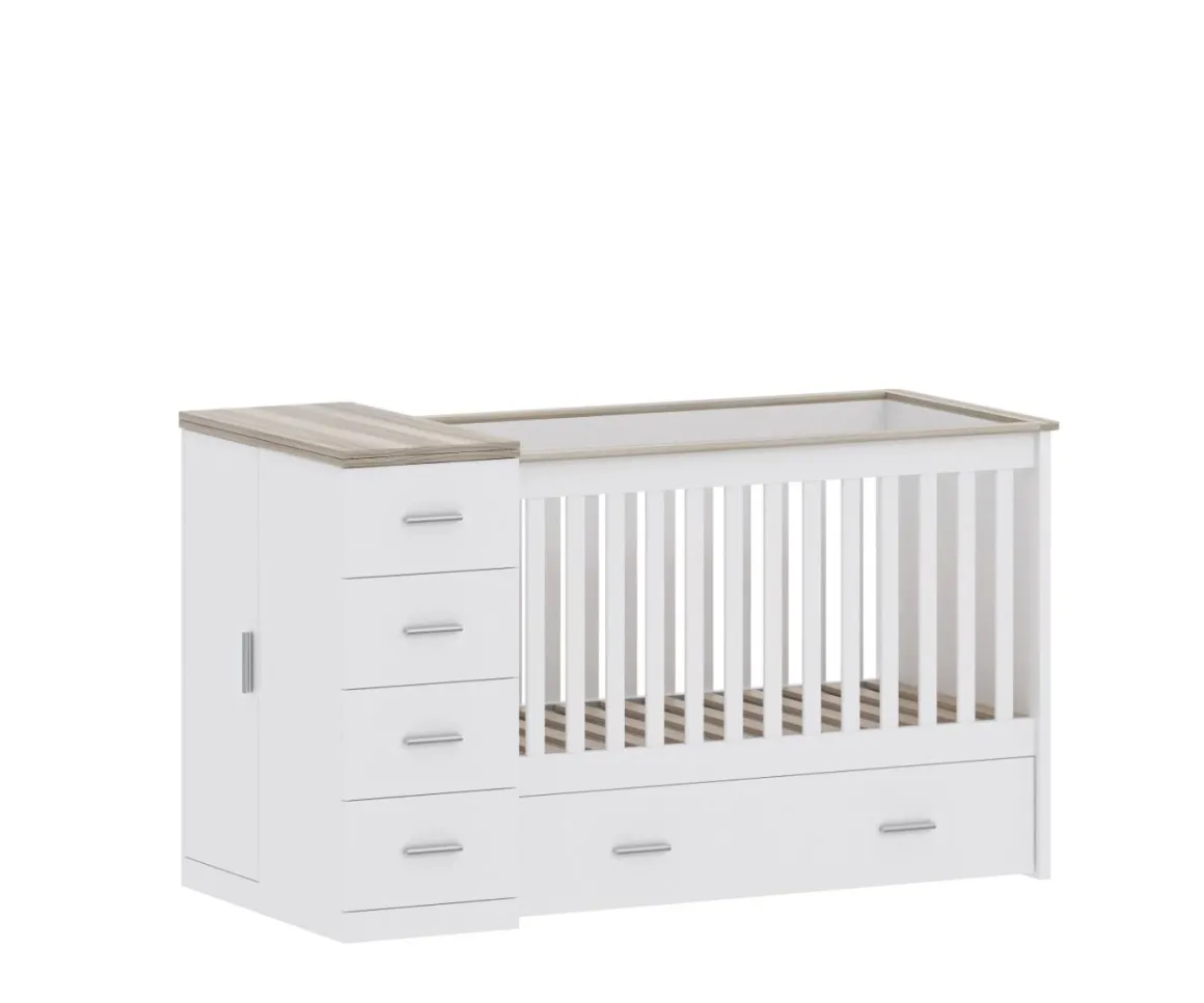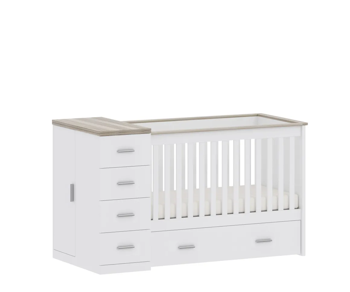 Heb je weinig ruimte in de babykamer? Born Lucky Combi Ledikant Memphis Wit Grijs past perfect in iedere ruimte, ook in een kleine babykamer! Het combi ledikant is een baby bedje, commode en kledingkast in één. Het biedt biedt alle gemakken van een complete babykamer, zonder dat het veel ruimte in beslag neemt.