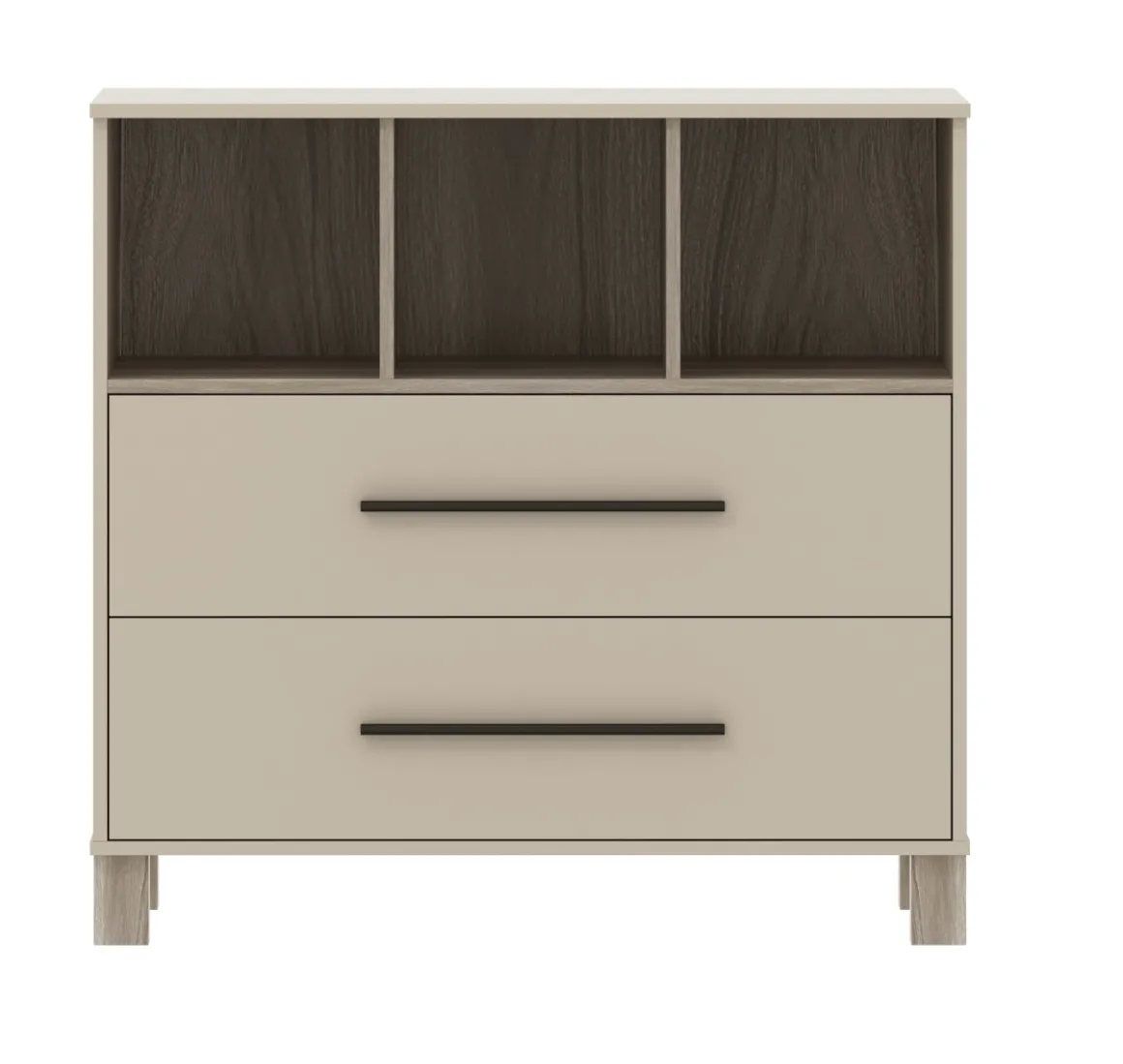 - Stoere details dankzij de zwarte handgrepen op de lades
