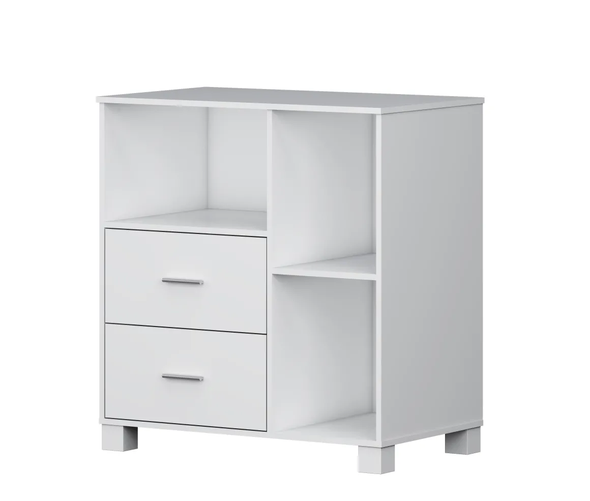 De twee ruime lades bieden voldoende ruimte voor het opbergen van luiers, kleding, hydrofiel doeken en verzoringsproducten. In de open vakken kan een commodemandje worden gezet of accessoires: praktisch en decoratief! Alles wat je dagelijks nodig hebt tijdens het verzorgen van je kindje heb je altijd binnen handbereik. Â