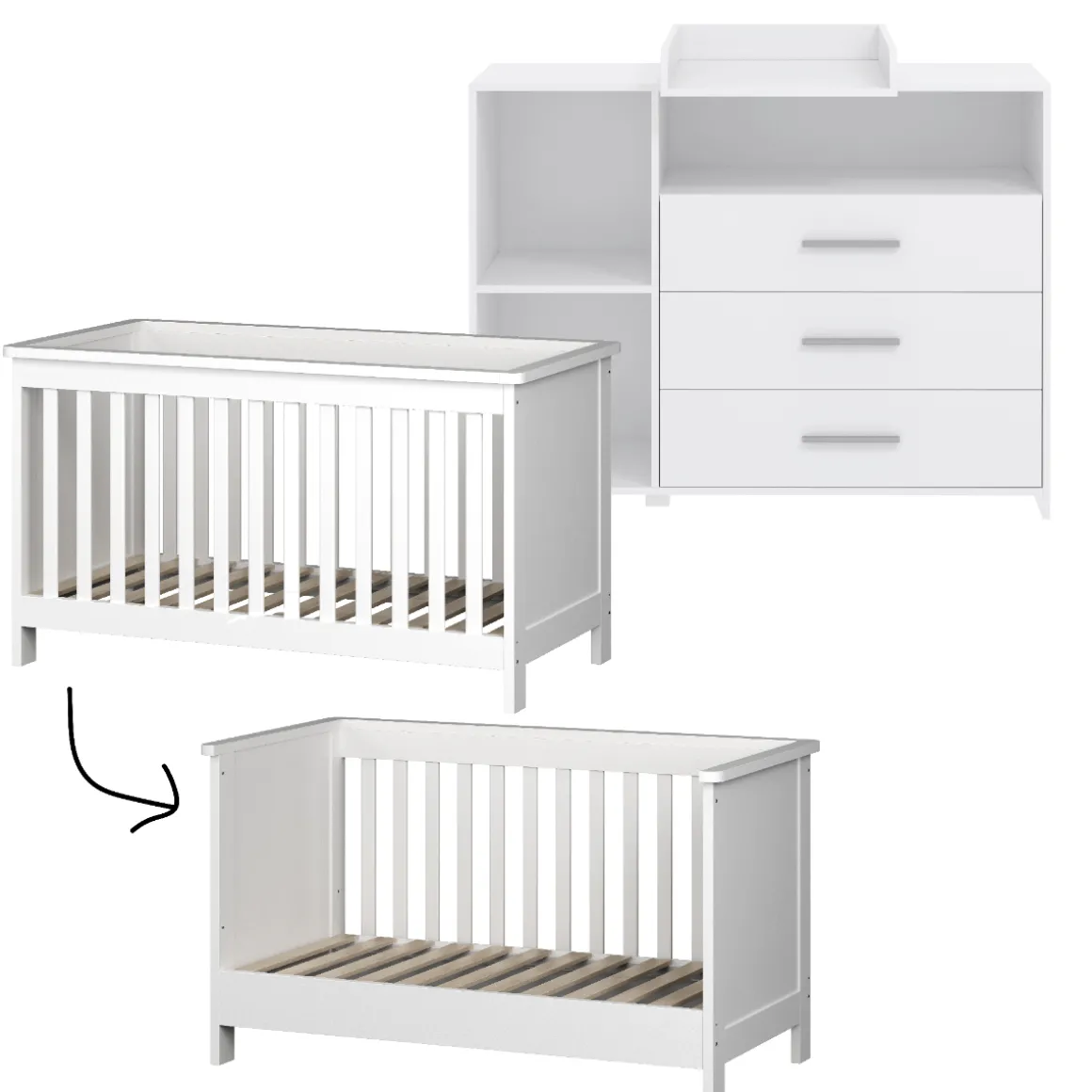 - 2-delige meegroei babykamer: meegroei ledikant en commode