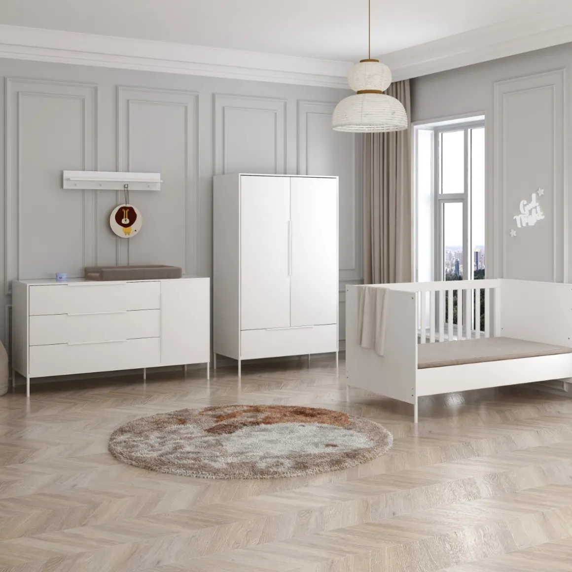 Ontdek de perfecte metgezel voor elke fase van je kleintje met de Born Lucky Meegroei Babykamer Santiago Wit XL 3 Delig. De babykamer groeit mee met je kindje vanaf de geboorte tot een leeftijd van 5 jaar. Een meegroei babykamer is een duurzame investering voor in de toekomst!Â