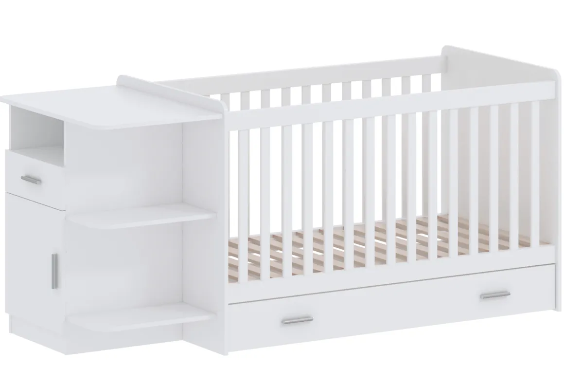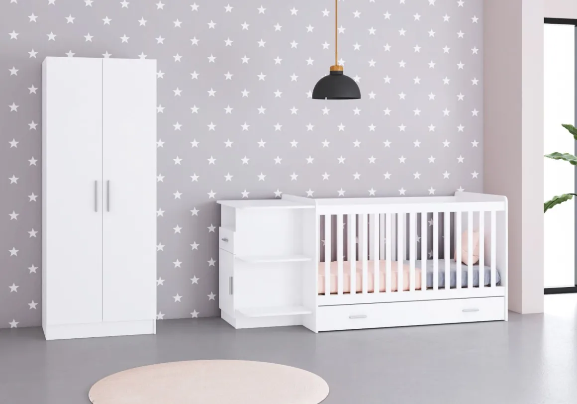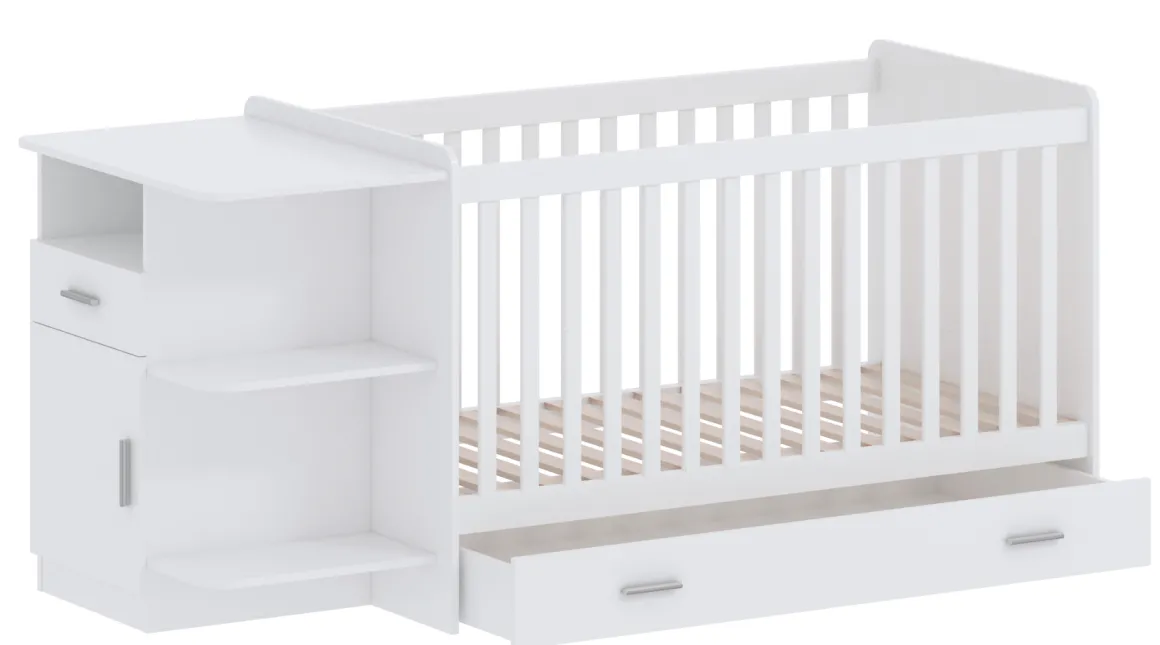 Het ledikant is voorzien van een handig kastje en een opberglade. Dit zorgt voor extra opbergruimte in de babykamer. Gebruik je de kast en de lade niet? Deze kunnen ook eenvoudig worden weggehaald.