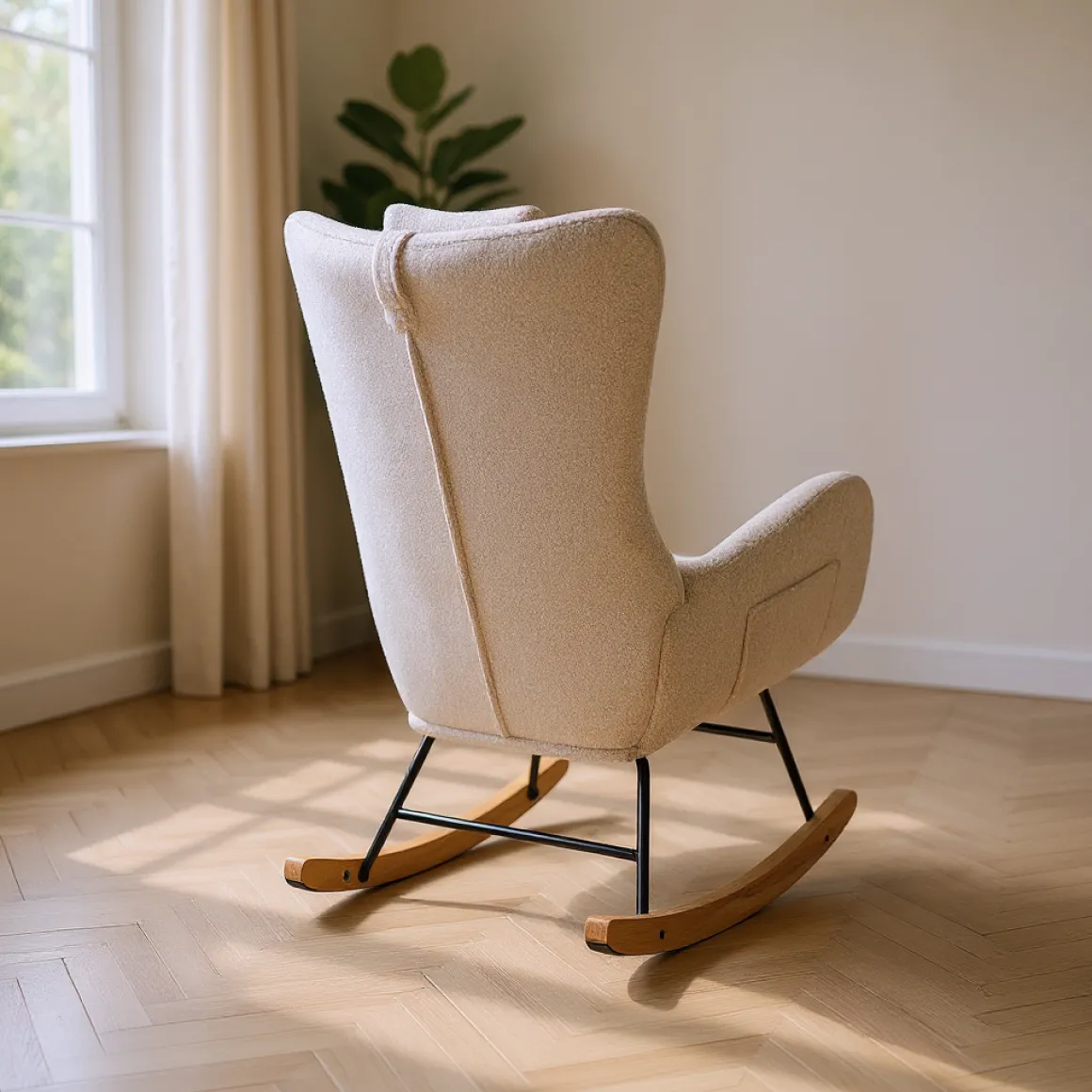 Deze schommelstoel is niet alleen praktisch, maar ook een echte eyecatcher. Dankzij het zachte materiaal en de afgeronde vormen creëer je direct een warme, knusse sfeer in huis. De schommelstoel heeft een stijlvol en tijdloos ontwerp dat past in elk interieur.