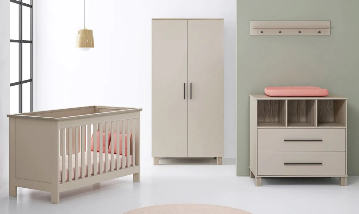 - Bijpassend baby bedje, commode en kledingkast verkrijgbaar