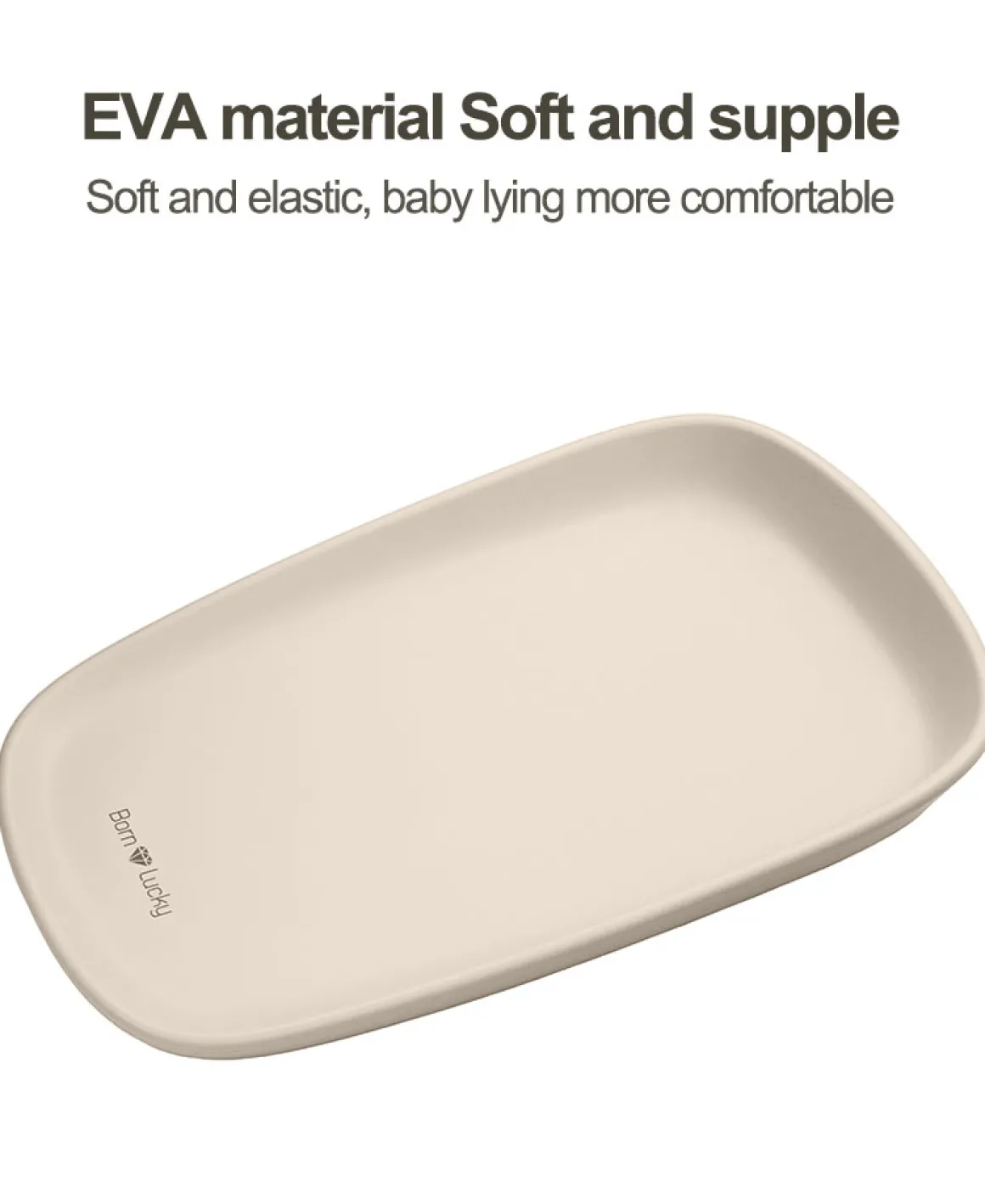 Het Born Lucky waskussen biedt optimaal comfort en gemak tijdens het verschonen van je baby. Dankzij het zachte oppervlak ligt je kindje heerlijk comfortabel, terwijl de opstaande randen extra veiligheid bieden. Het waskussen is ontworpen met oog voor zowel gebruiksgemak als stijl, zodat het perfect past op iedere commode. De neutrale kleuren en het tijdloze ontwerp zorgen ervoor dat het waskussen moeiteloos aansluit bij elke babykamerinrichting.