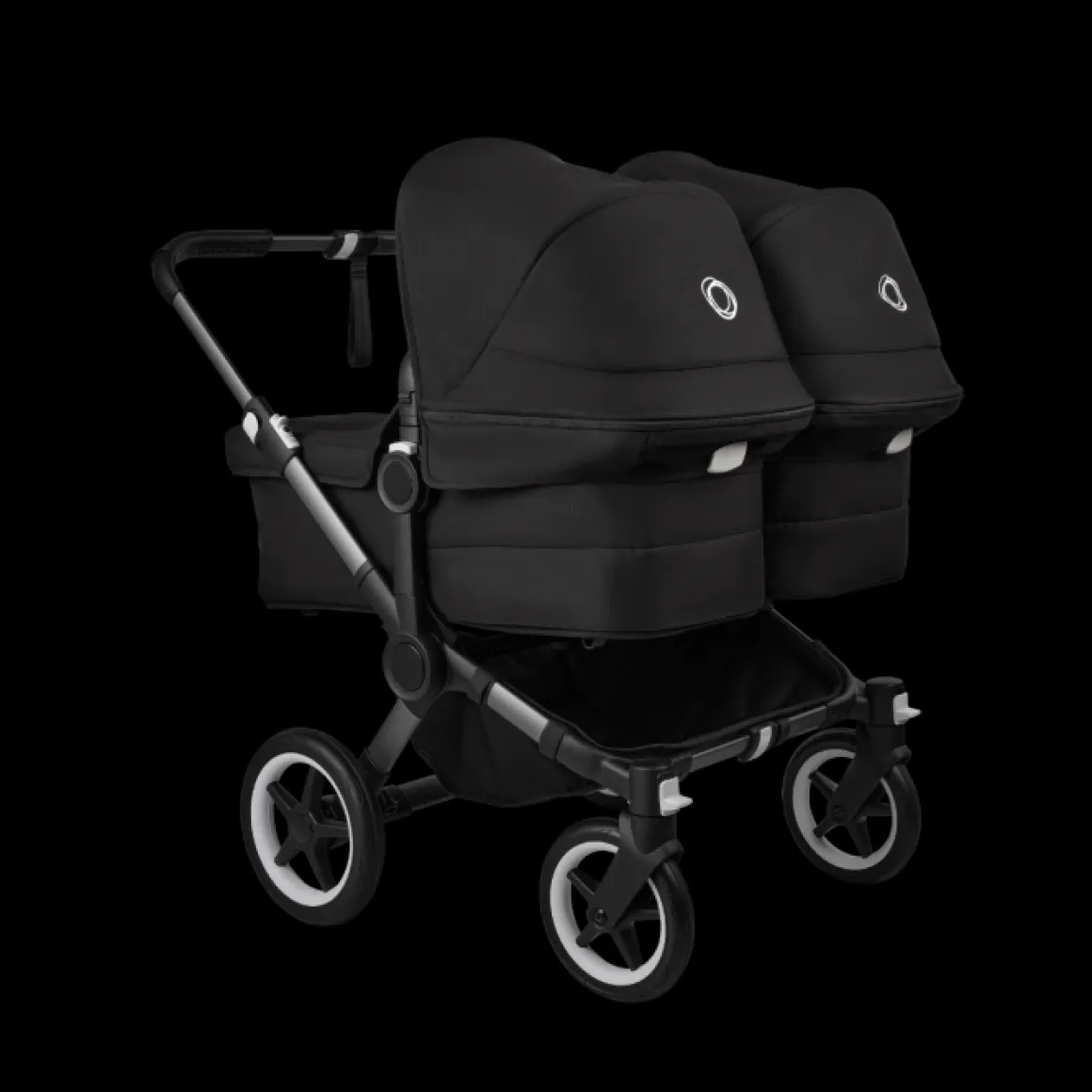 Met de Bugaboo Donkey 5 kan jouw tweeling vanaf dag één comfortabel zij aan zij liggen. De reiswiegjes worden naast elkaar op het frame van de kinderwagen geplaatst, zodat je beide kindjes goed kan zien.