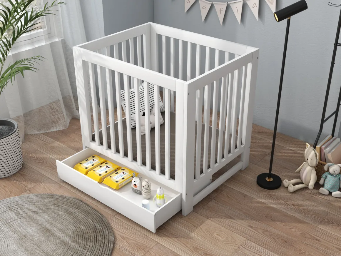 Dankzij de ruime lade onderin de box heb je altijd alle benodigdheden binnen handbereik. Of het nu gaat om speelgoed, kleding of luiers, de opberglade zorgt ervoor dat je de kamer netjes en georganiseerd houdt. Dit maakt de box niet alleen functioneel, maar ook een praktische toevoeging aan de babykamer.