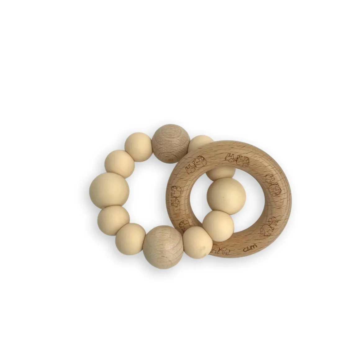 De prachtige Engraved Rattle Elephant is gemaakt van zachte siliconen kralen in een Navaho kleurstelling en is voorzien van een handige ring vervaardigd van beukenhout. Op de beukenhout ring zijn twee aapjes gegraveerd. De Chewie is geschikt voor baby’s vanaf 0 maanden en heeft een handzaam formaat van ongeveer 15 cm, waardoor het gemakkelijk vast te pakken is voor de allerkleinsten.