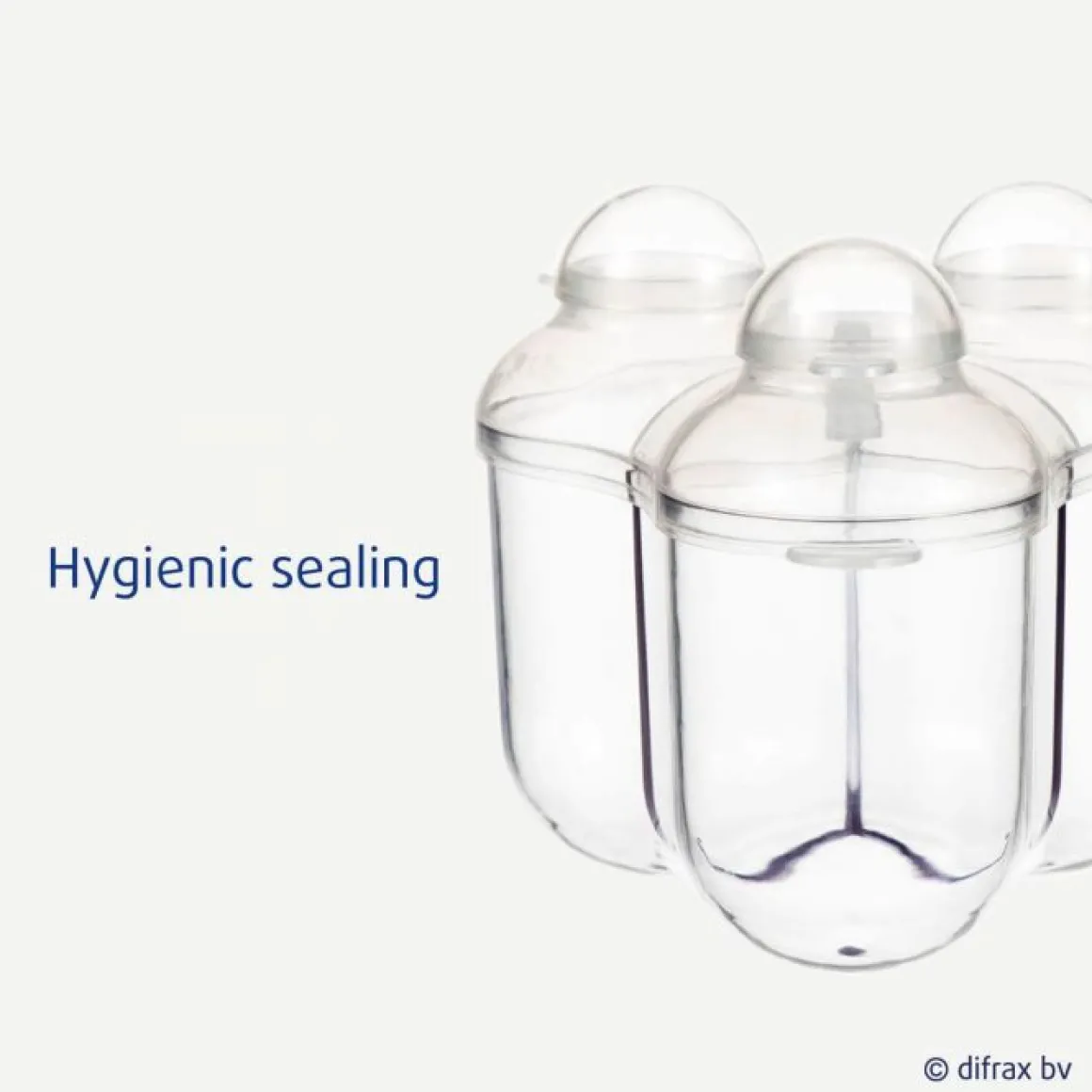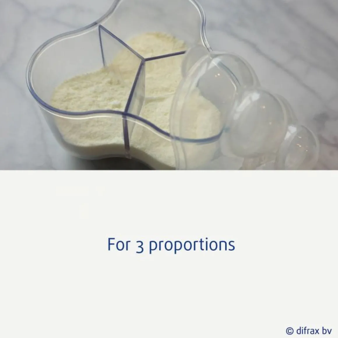 Het Difrax Melkpoeder Drievaksdoosje is voorzien van drie handige vakjes. Zo kun je eenvoudig en hygiƫnisch melkpoeder of babyvoeding meenemen. Erg makkelijk voor onderweg of thuis. De bakjes zijn geschikt voor drie flesvoedingen van 210 ml. De doseertuitjes sluiten aan op elke Difrax fles, waardoor je het melkpoeder makkelijk overgiet.