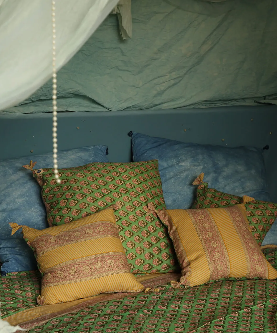 Elk Emma Kussen wordt met liefde en vakmanschap met de hand gemaakt in India. Vanwege het handgemaakte karakter kunnen kleine verschillen voorkomen in de uitstraling van elk kussen, waardoor ieder exemplaar een uniek kunstwerk op zich is.