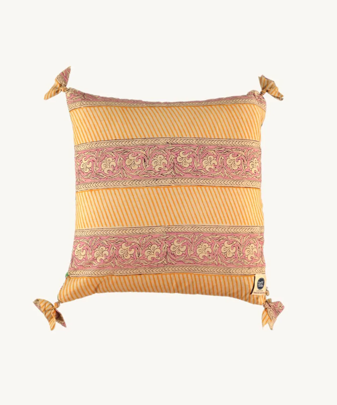 Elk Emma Kussen wordt met liefde en vakmanschap met de hand gemaakt in India. Vanwege het handgemaakte karakter kunnen kleine verschillen voorkomen in de uitstraling van elk kussen, waardoor ieder exemplaar een uniek kunstwerk op zich is.
