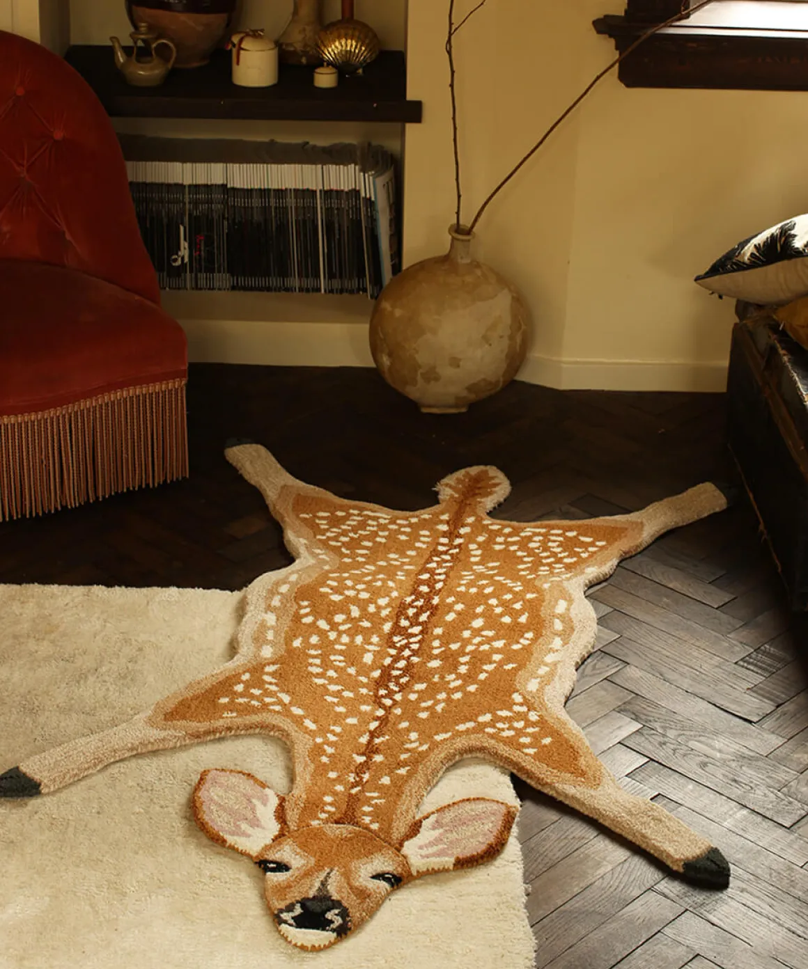 Het Francis Hert Vloerkleed is een onderdeel van de exclusieve Tapis Amis collectie. Deze collectie omvat een reeks vrolijke kleden geïnspireerd op dieren uit het rijk der natuur, die gegarandeerd een glimlach op je gezicht toveren.