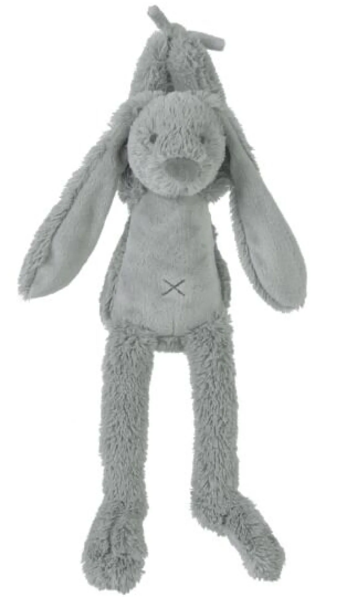 Rabbit Richie is het zachte knuffelkonijntje van het Nederlandse merk Happy Horse. Met dit schattige konijn valt je kleine heerlijk in slaap op de melodie van: Over the rainbow. Dit muziekdoosje is 34 cm en heeft een mooie grijze kleur dat unisex is! Ook kan het muziekdoosje gewassen worden op 30 graden!