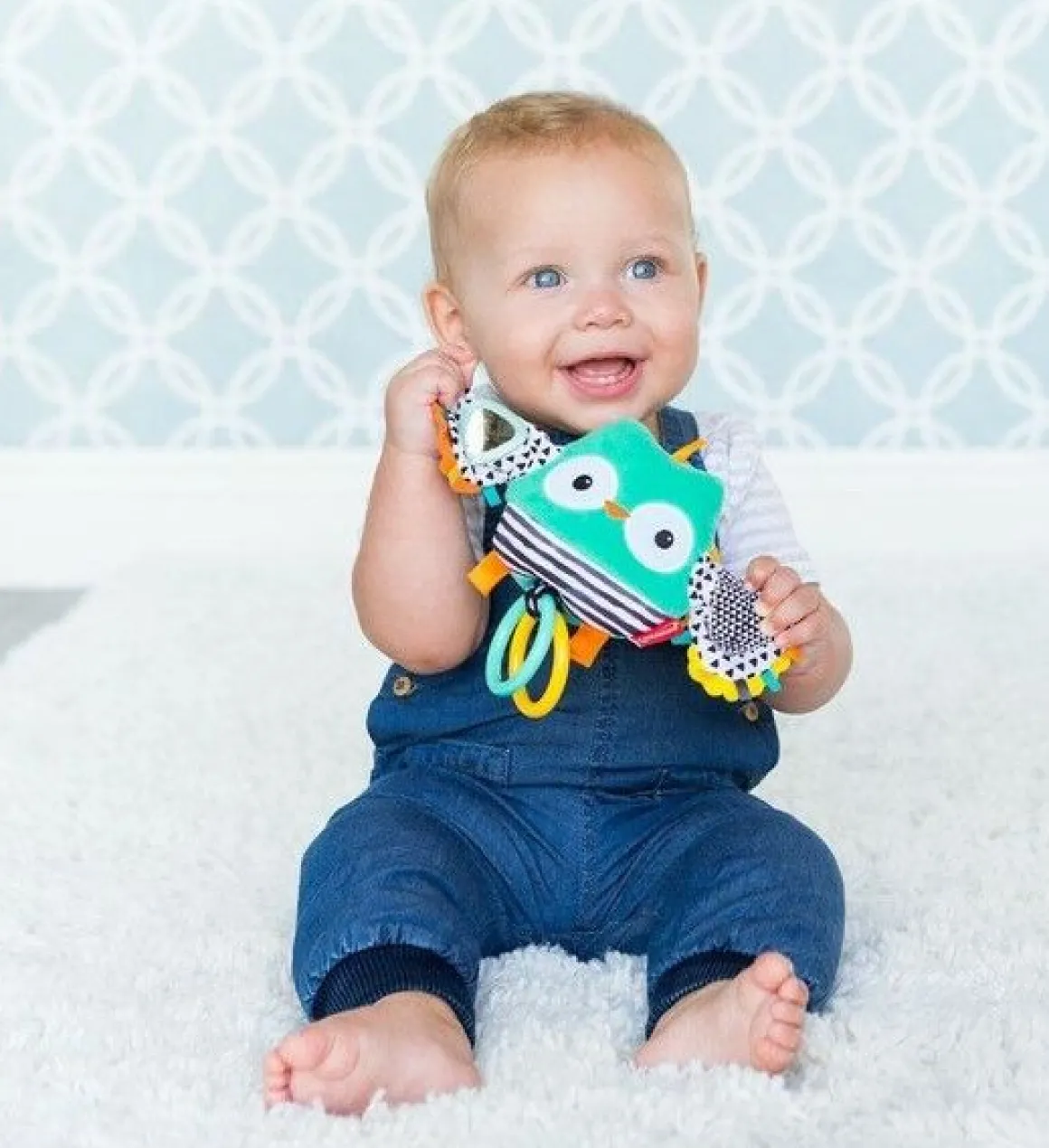 De Infantino Autostoelspeeltje Main Flutter And Jitter Pal is te bevestigen aan de buggy, autostoel of box bevestigen. Zodra je aan het koortje trekt gaat het uiltje trillen. De ringen zijn BPA-vrij en het speeltje is geschikt vanaf de geboorte.