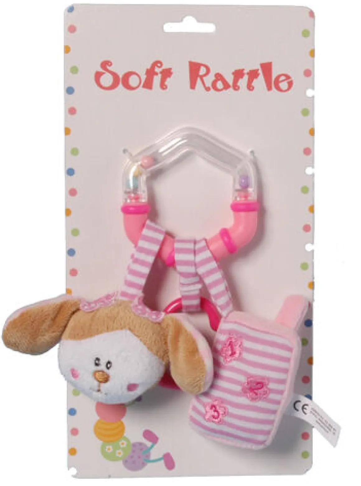 Aan de ring zitten drie speeltjes. In de ring zitten vrolijk gekleurde balletjes, welke vrolijk meebewegen wanneer je kindje met de ring rammelt. De ring is ook geschikt als bijtring.