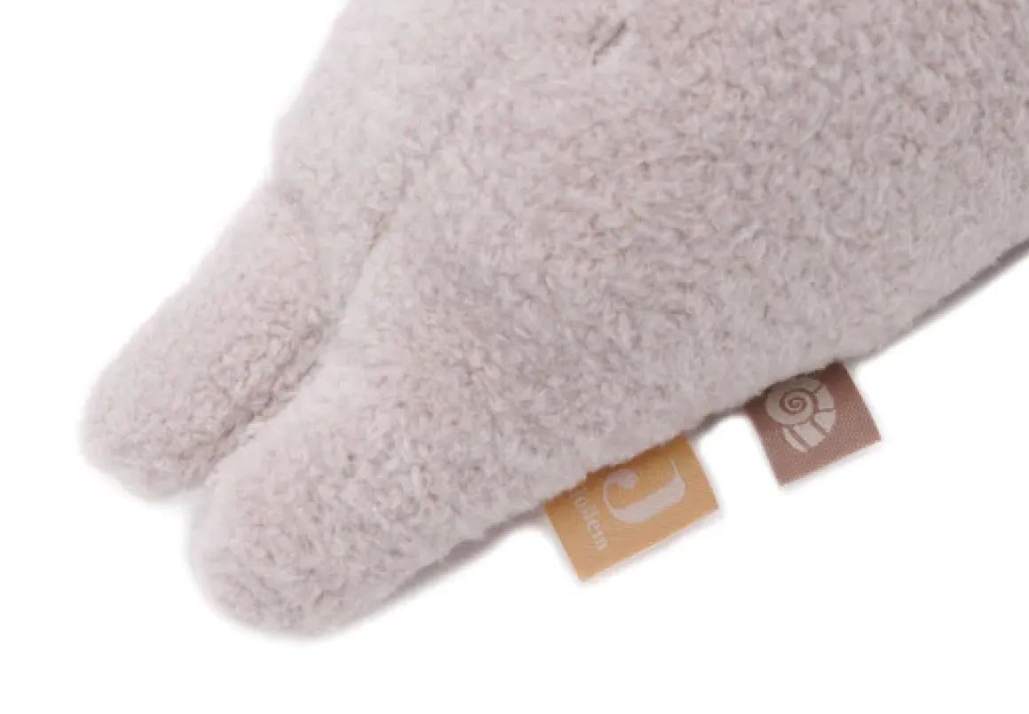Deze activity toy is voorzien van knisperende pootjes/vinnen en speelse labeltjes waar kleine vingertjes graag mee spelen. Het zachte bouclé en fleece materiaal voegen een extra laagje textuur toe, waardoor je baby verschillende materialen kan verkennen en voelen.