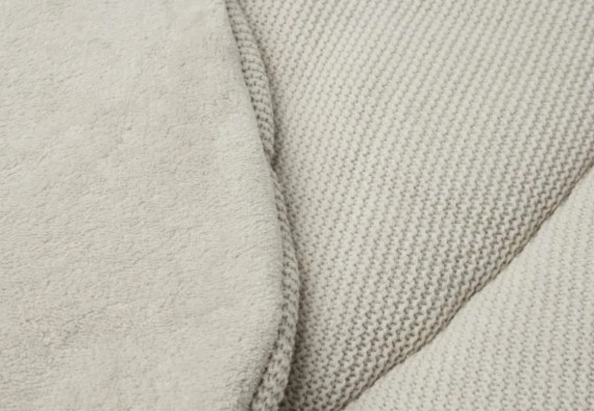 Het Basic Knit boxkleed heeft een unieke ronde vorm met een diameter van 95 cm.