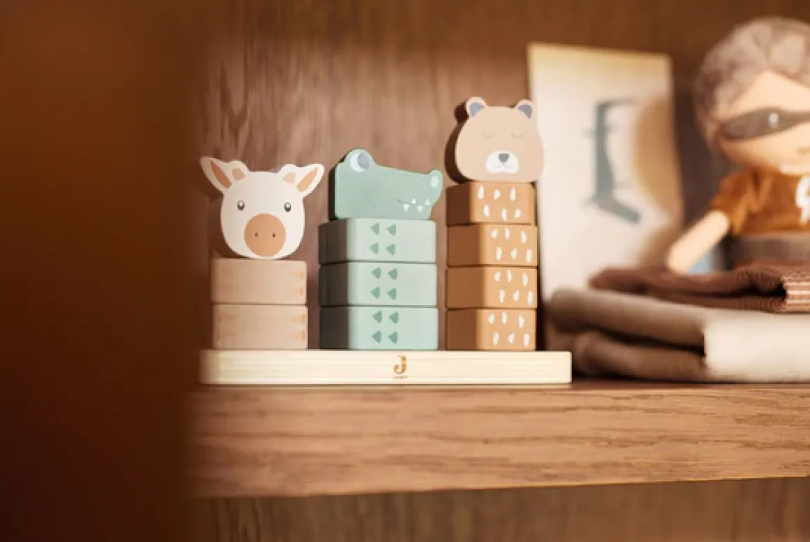 De Jollein Houten Stapeltoren is gemaakt van FSC 100% gecertificeerd hout, wat betekent dat je een duurzame keuze maakt die ook goed is voor het milieu. De toren is ontworpen met aandacht voor zowel esthetiek als functionaliteit, en biedt een stevig en veilig speeltje voor je kleintje. Door de verschillende kleuren en de schattige jungle-dieren – de giraffe in caramel kleur, de krokodil in ash green en de cheetah in biscuit kleur – biedt de toren een visueel aantrekkelijke en educatieve ervaring die kinderen zal inspireren.