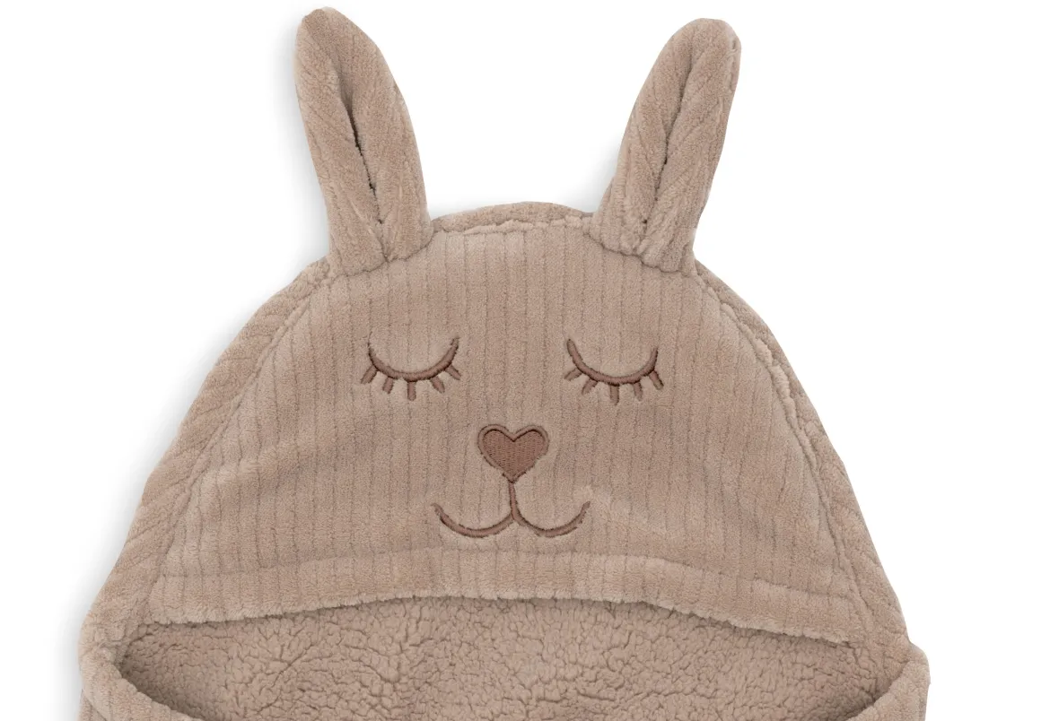 Wikkel je kindje in de wikkeldeken en sluit de deken met de praktische klittenbandstroken. Doe de capuchon op het hoofdje van je kindje en laat je betoveren door de schattige oortjes en het lieve gezichtje op het mutsje.
