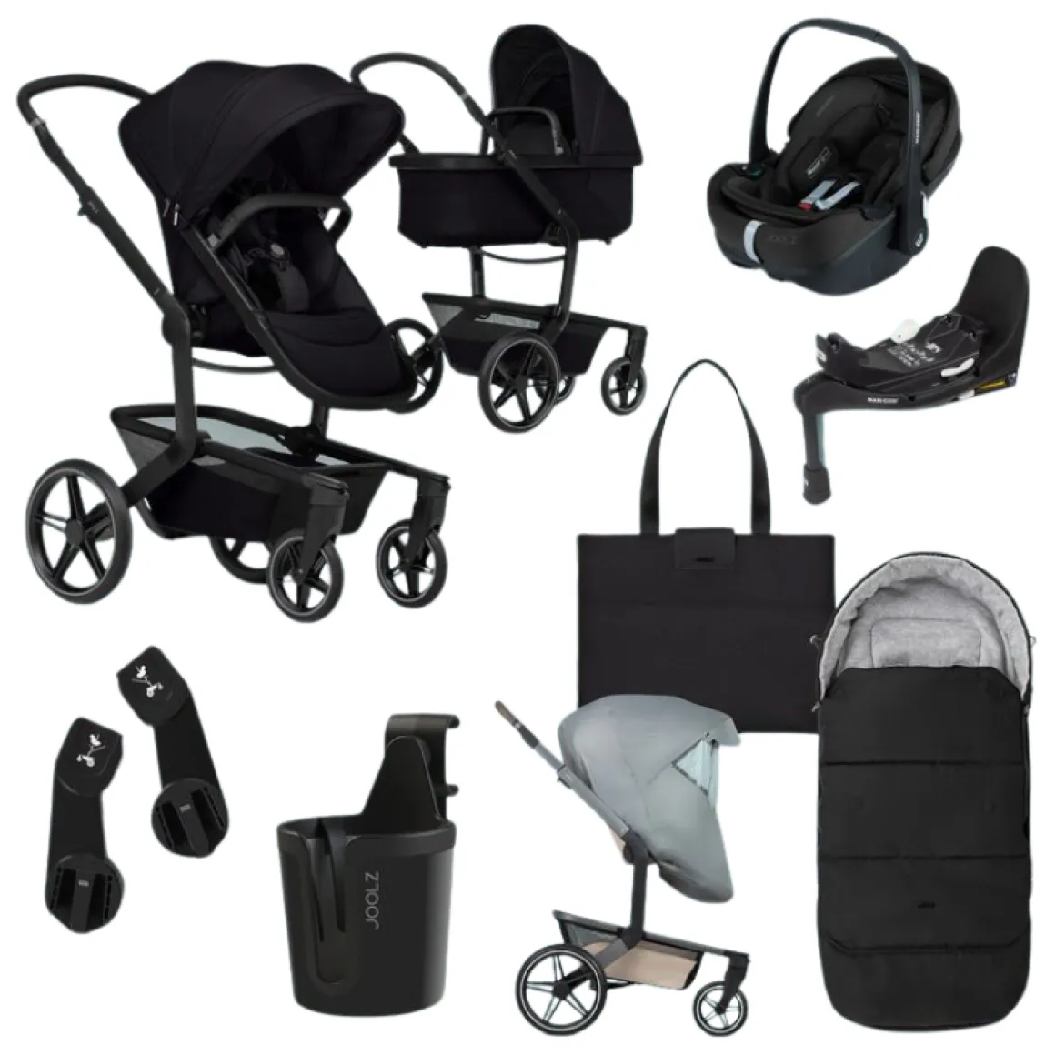 - Bundel inclusief reiswieg, wandelwagenzitting, veiligheidsbeugel, zonnekap, boodschappenmand, Maxi-Cosi Groep 0 Autostoel, Maxi-Cosi 360 Pro Isofix Base, voetenzak, bekerhouder, autostoeladapters, regenhoes en verzorgingstas