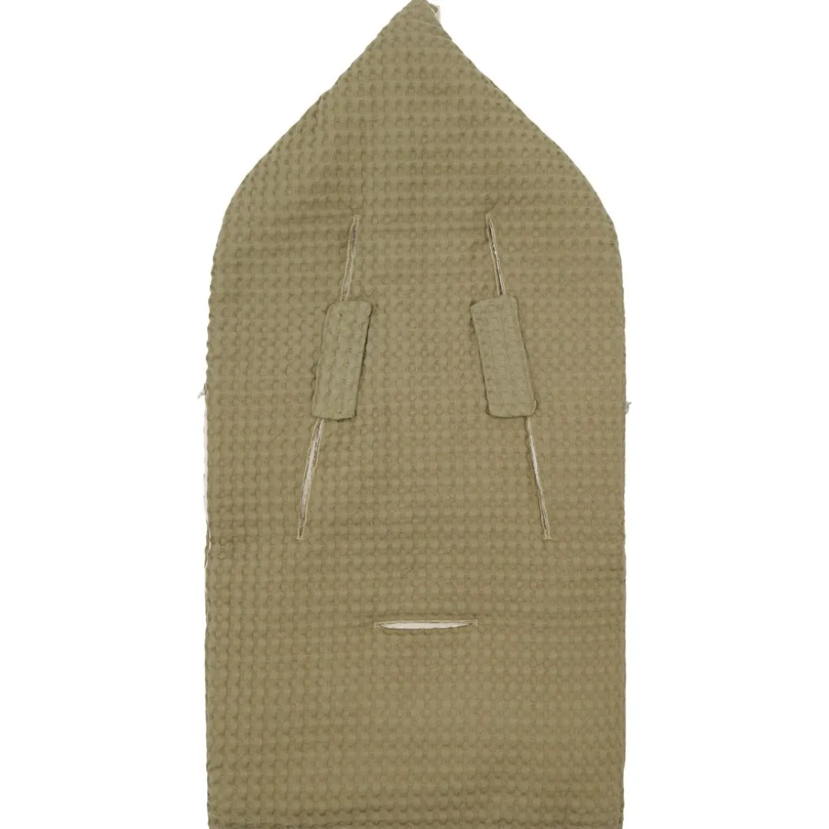 De voetenzak is eenvoudig te openen en te sluiten met een handige ritssluiting. De bovenkant kan worden omgeslagen en vastgezet met veilige drukkers, waardoor je kleintje gemakkelijk in en uit de voetenzak kan worden gehaald.
