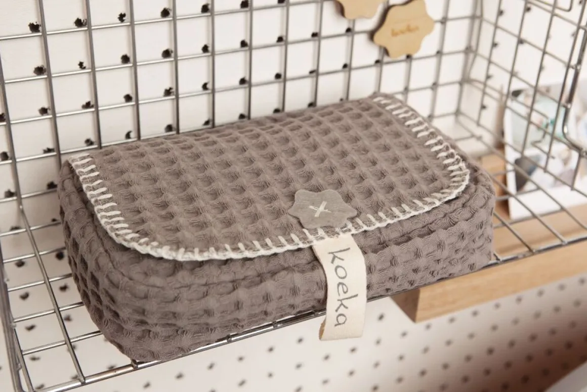 Met deze hoes maakt het niet meer uit waar de billendoekjes blijven slingeren. De billendoekjes zijn op deze manier altijd stijlvol bedekt. De hoes is makkelijk over de verpakking heen te plaatsen door de klittenbandopening aan de onderkant. De binnenkant van de hoes is voorzien van een waterafstotende laag zodat de hoes niet vochtig kan worden. Maak een passend geheel door de hoes af te stemmen op de andere wafelproducten in de babykamer.Â
