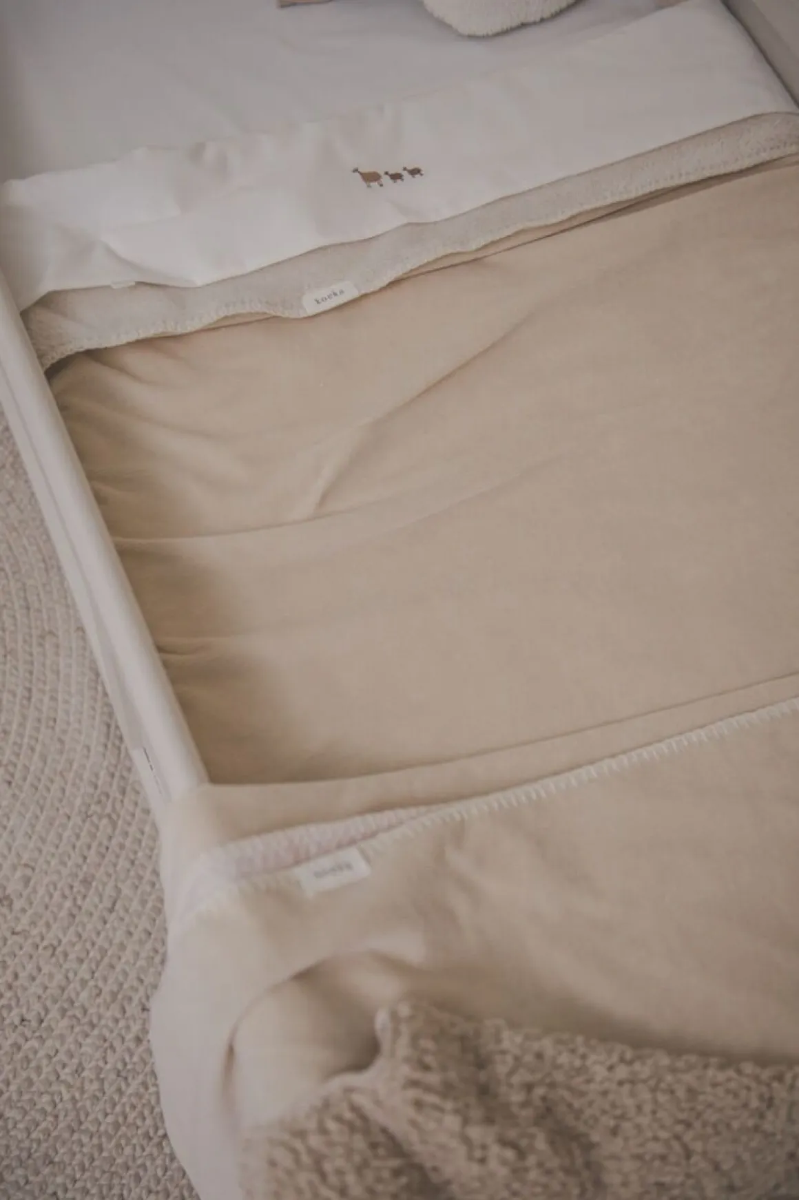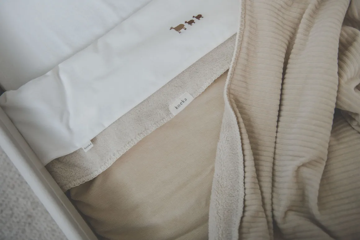 De Koeka Ledikantdeken Teddy Oddi Warm White 100 x 150 cm is gevoerd met heerlijke warme, zachte teddy en is perfect om onder te slapen tijdens de koude maanden. De bovenkant van de deken is gemaakt van een fijne corduroy. Een prachtig contrast tot de zachte teddy en dit geeft de deken een trendy retro uitstraling.