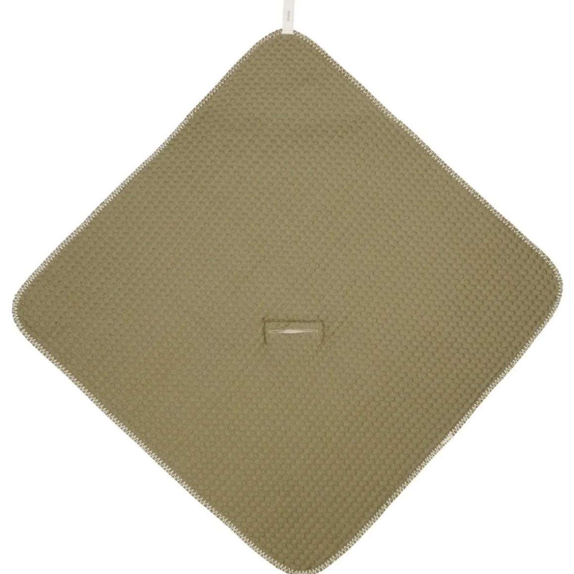 Dankzij de handige ophanglus hangt de omslagdoek altijd binnen handbereik in de babykamer. Zo heb je hem direct bij de hand wanneer je kleintje wat extra warmte nodig heeft.