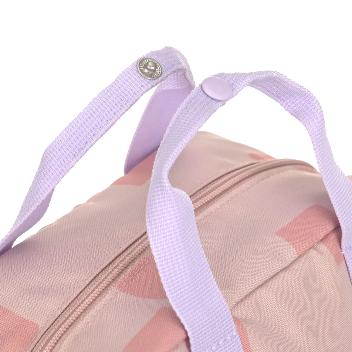 De rugzak is uitgerust met gewatteerde, verstelbare schouderbanden en een borstband die zorgen voor extra stabiliteit en draagcomfort. Dankzij de korte schouderbanden met drukknoop kan de tas eenvoudig worden gedragen of opgehangen. Het lichte gewicht en de zachte buitenstof maken de rugzak bijzonder kindvriendelijk.