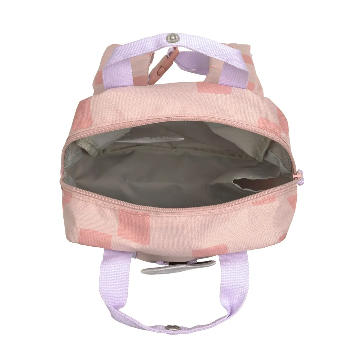 Met een inhoud van 7 liter en afmetingen van 20,5 x 11 x 27 cm biedt de Mini Square rugzak voldoende ruimte voor kleding, snacks en andere benodigdheden. Het ruime hoofdvak heeft een handige insteeklus voor een fles, terwijl het extra voorvak perfect is voor kleinere spullen zoals sleutels of een snackbox. Zo blijft alles overzichtelijk en gemakkelijk bereikbaar.