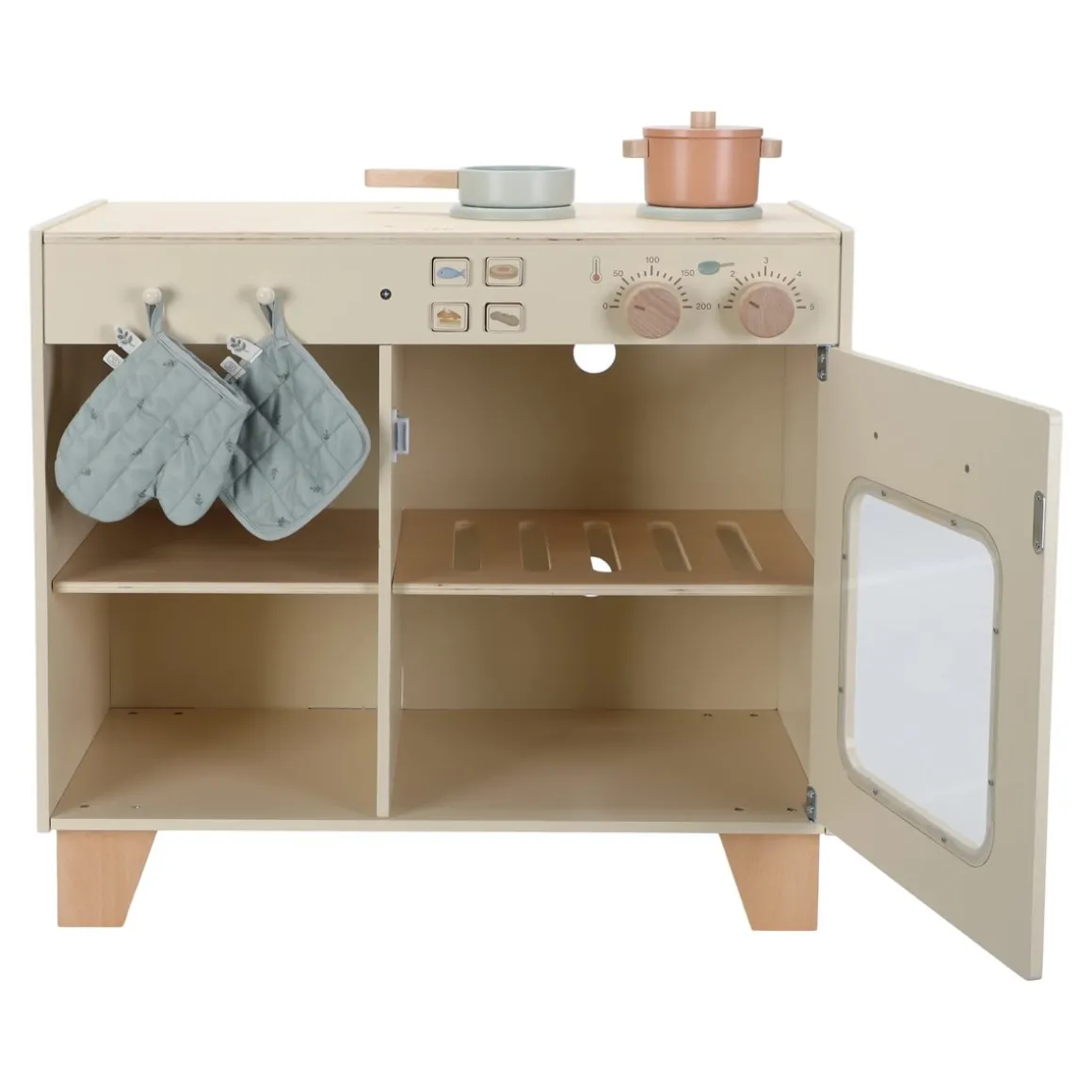 - Houten speelkeuken met fornuis, oven en kookaccessoires