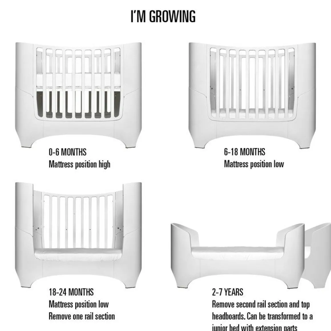 Wanneer je baby is geboren gebruik je dit bed als ledikant. Wanneer je kindje ongeveer 3 jaar is, zal het waarschijnlijk er aan toe zijn aan een groter bed. Met de inbegrepen ‘Junior Kit’ bouw jij het Leander Baby-Junior Bed dan eenvoudig om tot een peuterbed. Zo kan je kindje nog heerlijk vertrouwd in zijn/haar eigen bed slapen totdat het de leeftijd van 7 jaar heeft bereikt.