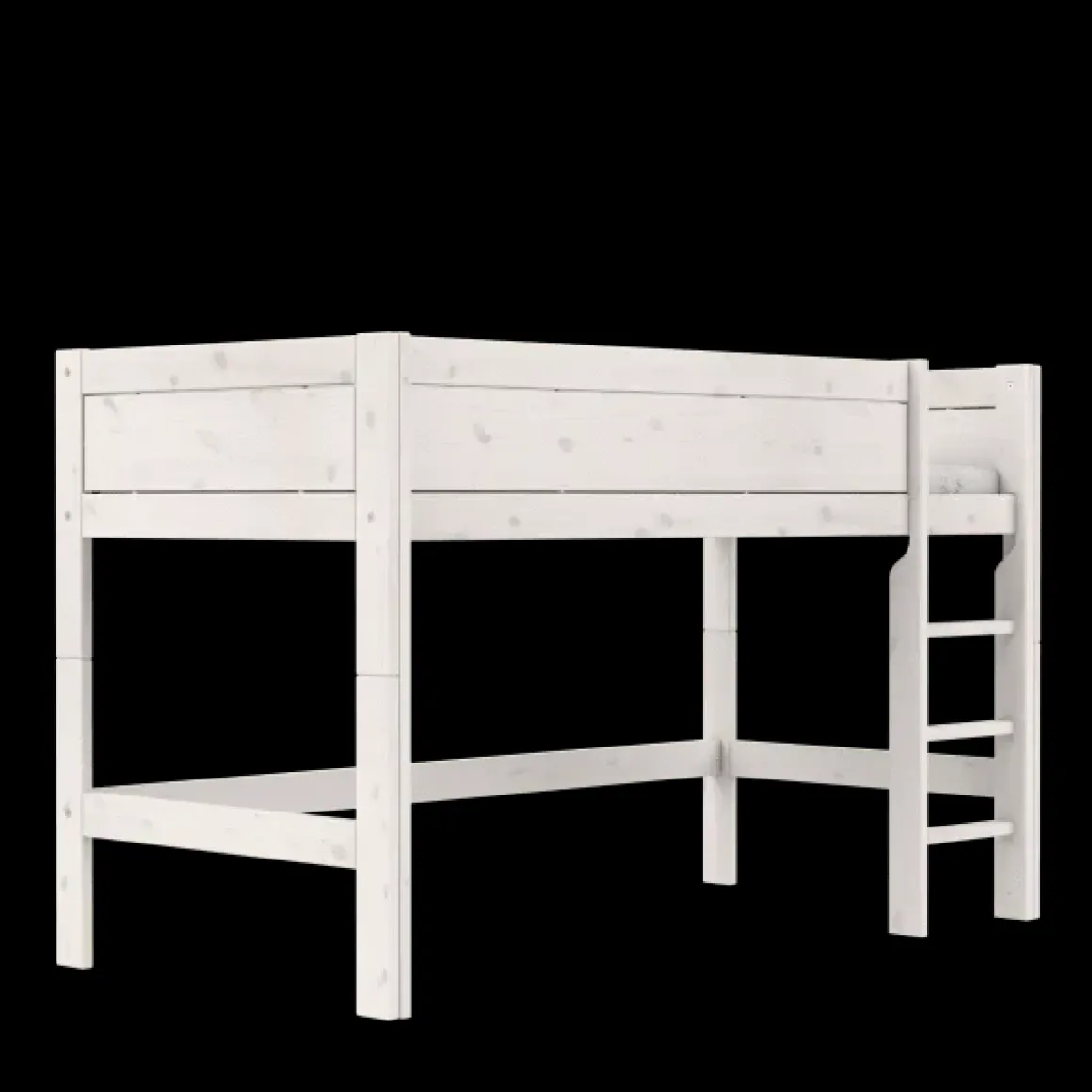 De halfhoogslaper is voorzien van een rechte ladder die zowel links als rechts geplaatst kan worden. Hierdoor past het bed gemakkelijk in verschillende soorten kamers en blijft de indeling flexibel. Het compacte ontwerp zorgt ervoor dat er optimaal gebruik wordt gemaakt van de ruimte.