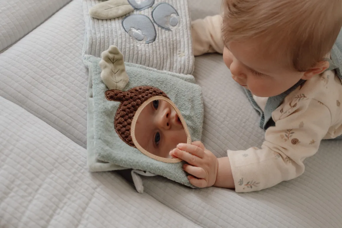Baby’s vervelen zich geen moment met Little Dutch Activiteitenboekje. Er valt veel te beleven met de verschillende materialen en activiteiten, zoals een spiegeltje, rammelaar en verstopte speeltjes. Ook heeft een zachte boekje verschillende labels om aan te voelen. Dit prikkelt niet alleen de zintuigen, maar is ook goed voor de ontwikkeling van de hand-oogcoördinatie. Het activiteitenboekje is met de kunststof ring makkelijk te bevestigen aan een autostoeltje, box of kinderwagen.