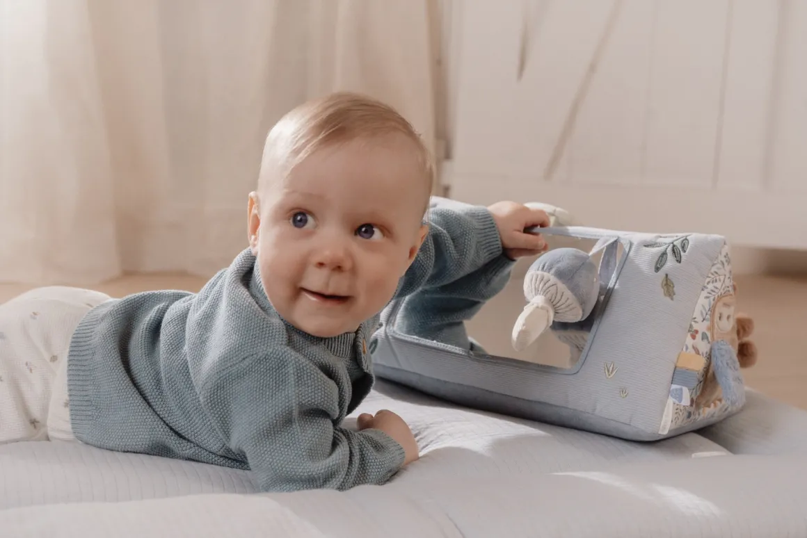 De driehoek zelf is divers opgemaakt. Op de Little Dutch Activiteitendriehoek valt er veel te ontdekken. Van knisperende vleugels tot aan een spiegeltje en een rammelaar. De driehoek heeft speelse functies en leuke texturen die de zintuigen en verbeeldingskracht van je baby prikkelen.