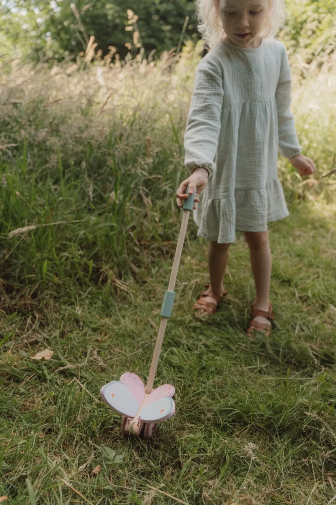 De Little Dutch Duwstok is gemaakt van duurzaam hout, waardoor hij stevig en veilig is voor dagelijks gebruik. De voeten van de duwstok zijn voorzien van rubberen ringen, wat zorgt voor een goede grip op verschillende ondergronden en voorkomt krassen op de vloer. Het houten ontwerp en de zachte kleuren passen perfect bij de andere Little Dutch speelgoedcollecties, waardoor het een prachtige aanvulling is in elke speelkamer.