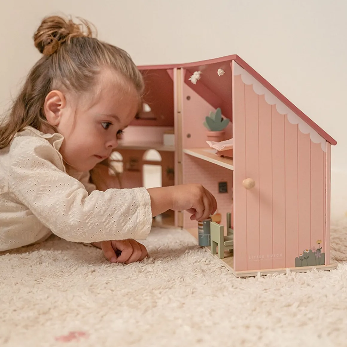 Laat de fantasie van je kind tot leven komen met het Little Dutch Houten Poppenhuis – Small – Pink. Dit schattige poppenhuis is ontworpen met oog voor detail en biedt urenlang speelplezier voor kinderen vanaf 3 jaar.