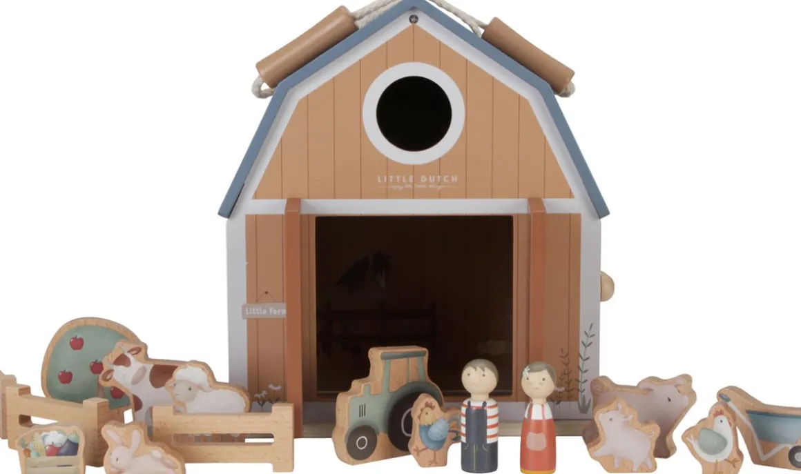 Het Little Dutch Poppenhuis Little Farm is ontworpen als een handig inklapbaar boerderijhuisje, en wanneer het wordt geopend, onthult het een charmante boerderijwereld. Binnenin vinden kinderen schattige houten speelfiguren die de bewoners van de boerderij voorstellen. Met deze figuren kan je kind zijn of haar eigen verhalen verzinnen en de boerderij tot leven brengen.