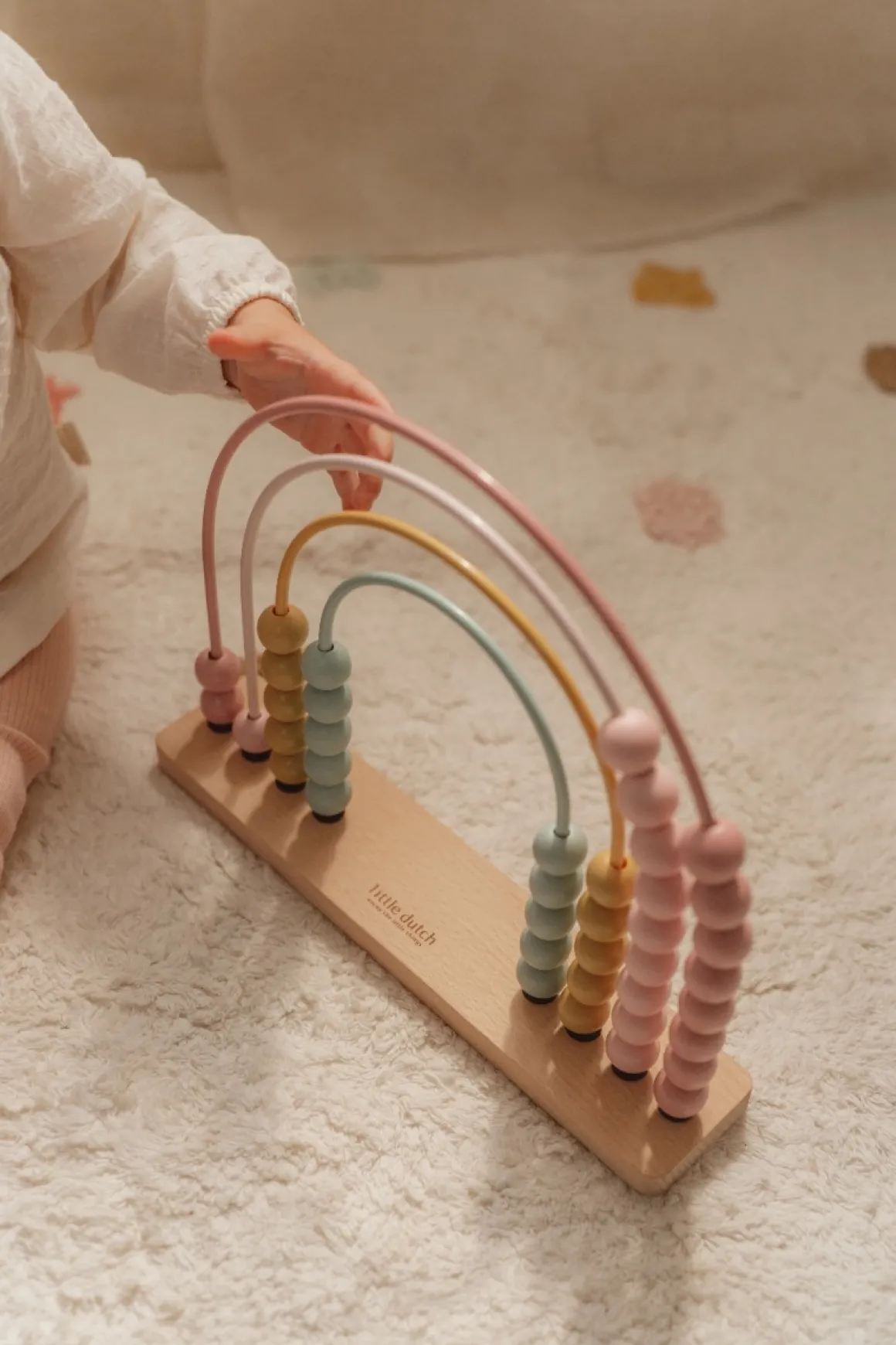 Met de Little Dutch Regenboog Telraam wordt het leren tellen een vrolijke en educatieve ervaring. De regenboogvormige structuur maakt het tellen niet alleen visueel aantrekkelijk, maar ook stimulerend voor jonge kinderen. Het schuiven van de kraaltjes over de houten balken zorgt voor interactief en betrokken spel, waarbij je kindje spelenderwijs leert tellen en cijfers herkennen. Deze speelse benadering maakt leren een leuke en motiverende activiteit.
