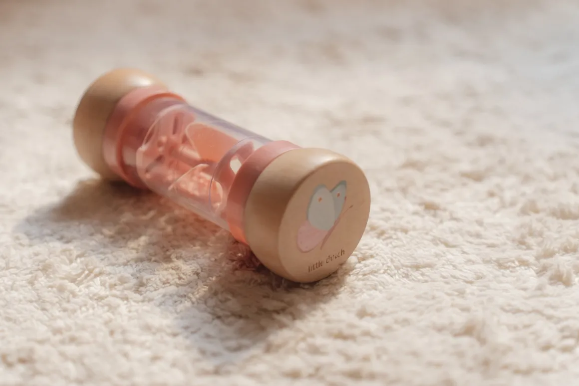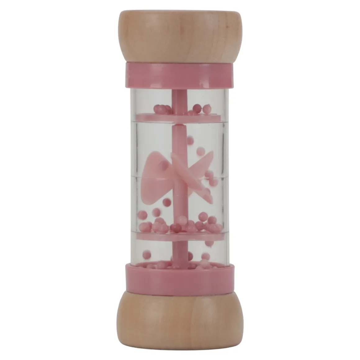 Ontdek de betoverende wereld van geluid en beweging met onze regenrammelaar, een fantastisch speeltje dat zowel de zintuigelijke ontwikkeling als het muzikale talent van je baby stimuleert. Het schudden en rammelen van deze regenmaker brengt een kalmerend regengeluid voort, terwijl kleine balletjes van de ene naar de andere kant van de buis bewegen. Dit resulteert in een rustgevend geluid dat zowel vermaak als ontspanning biedt.